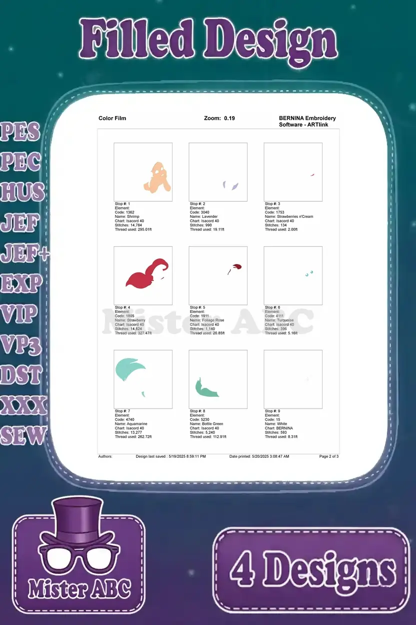 | Stitches | Colors | Thread Changes |