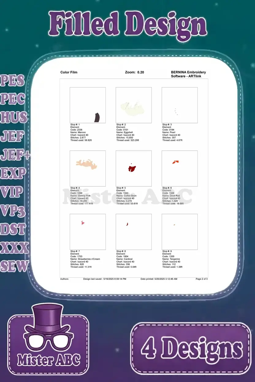 | Stitches | Colors | Thread Changes |