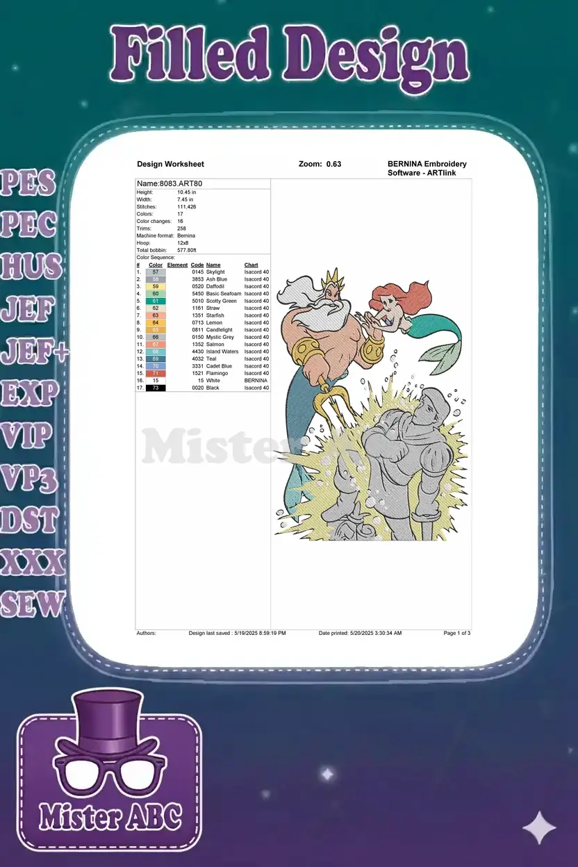 Dive into a classic Disney moment! This vibrant embroidery captures King Triton’s fury and Ariel’s concern. Perfect for fans of ‘The Little Mermaid’ who love detailed, iconic scenes.