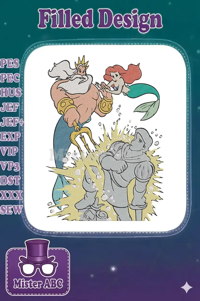 Disney Little Mermaid King Triton Destroying Prince Eric Statue Embroidery Designs – Instant Download