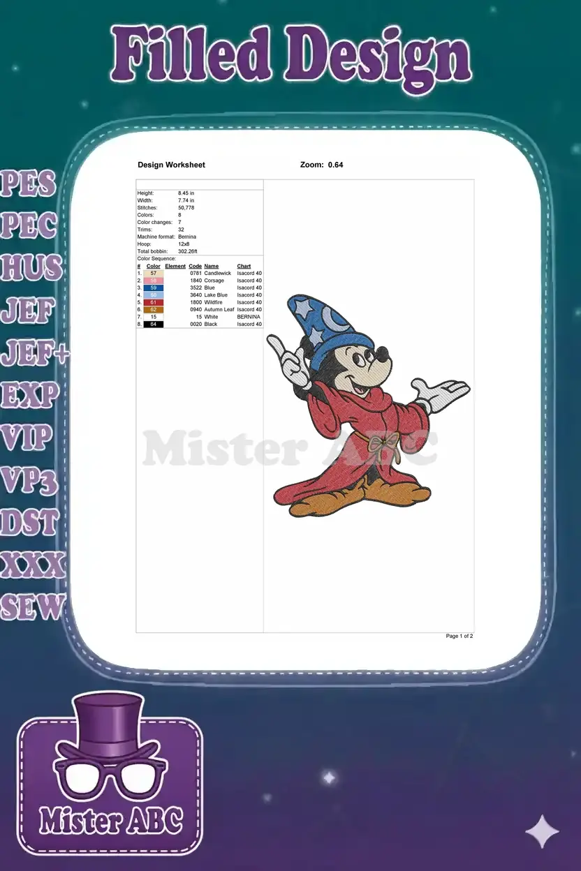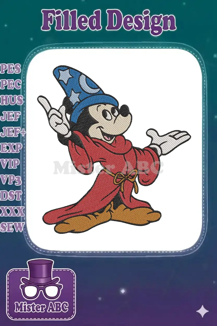 Disney Mickey Mouse Sorcerer Apprentice Magical Pose Embroidery Designs