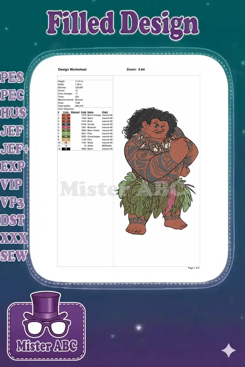 Disney Moana Maui Demigod Polynesian Tattooed Hero Embroidery Designs