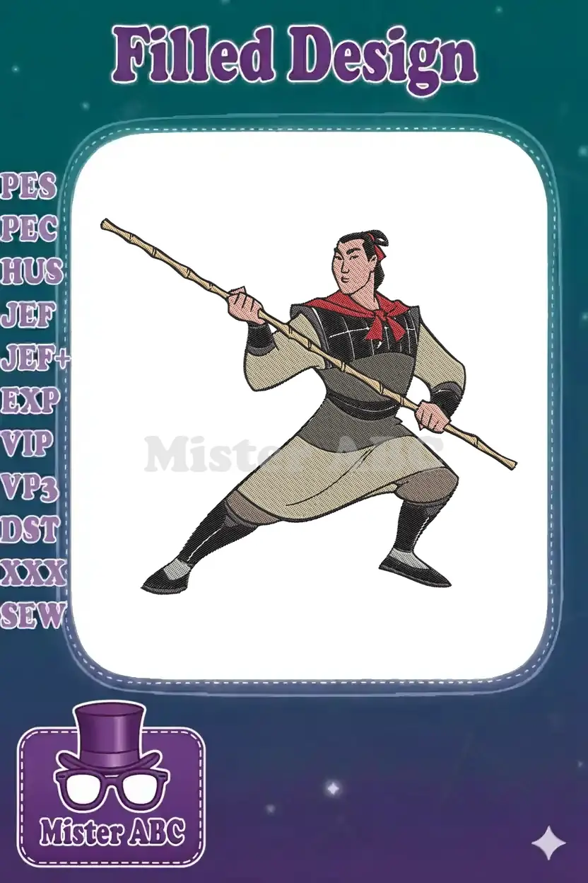 Disney Mulan Captain Li Shang martial arts pose embroidery designs