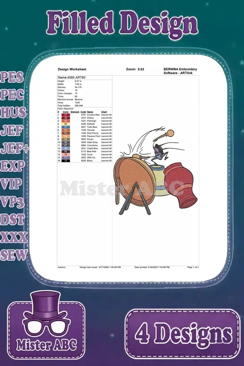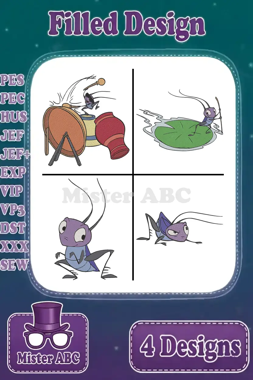 Disney Mulan Cri Kee Lucky Cricket Playing Drum On Lily Pad Character Poses - Filled Embroidery Design - Instant Download Disney Mulan Cri Kee Lucky Cricket Playing Drum On Lily Pad Character Poses – Filled Embroidery Design – Instant Download