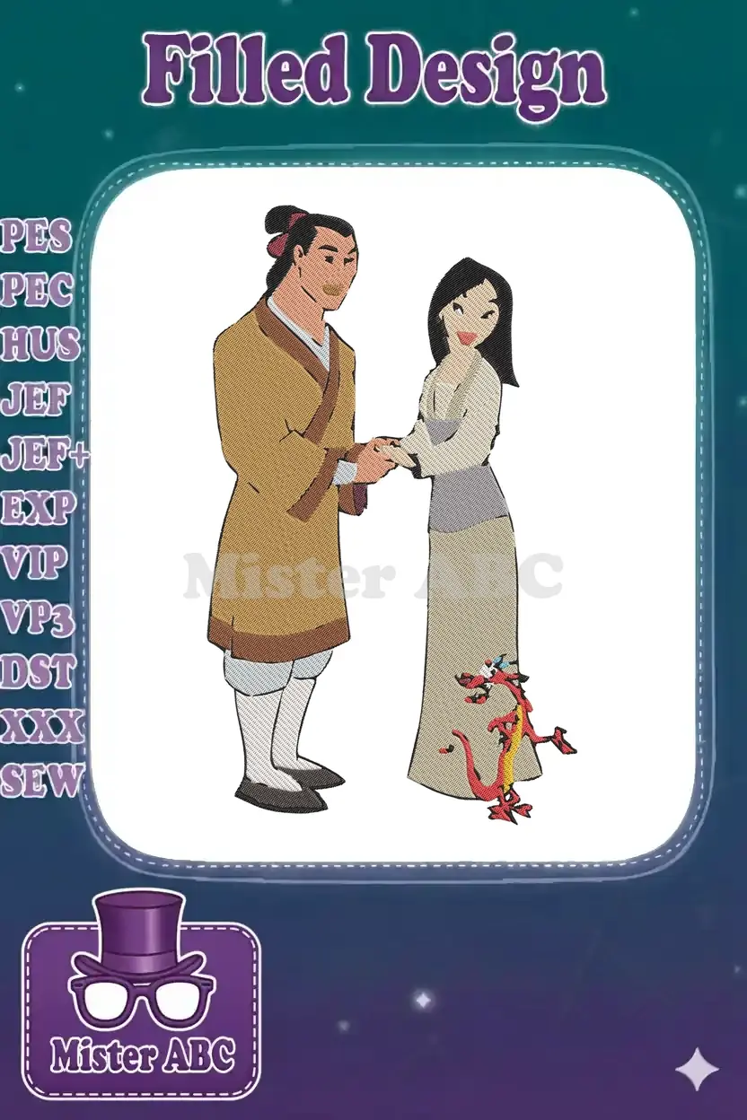Disney Mulan and Shang Mushu dragon couple embroidery designs