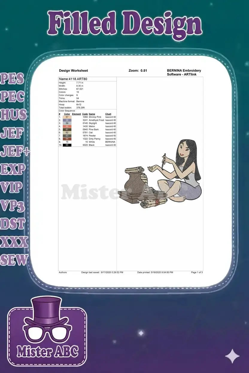 Disney Mulan warrior princess practicing ancient Chinese calligraphy art embroidery designs