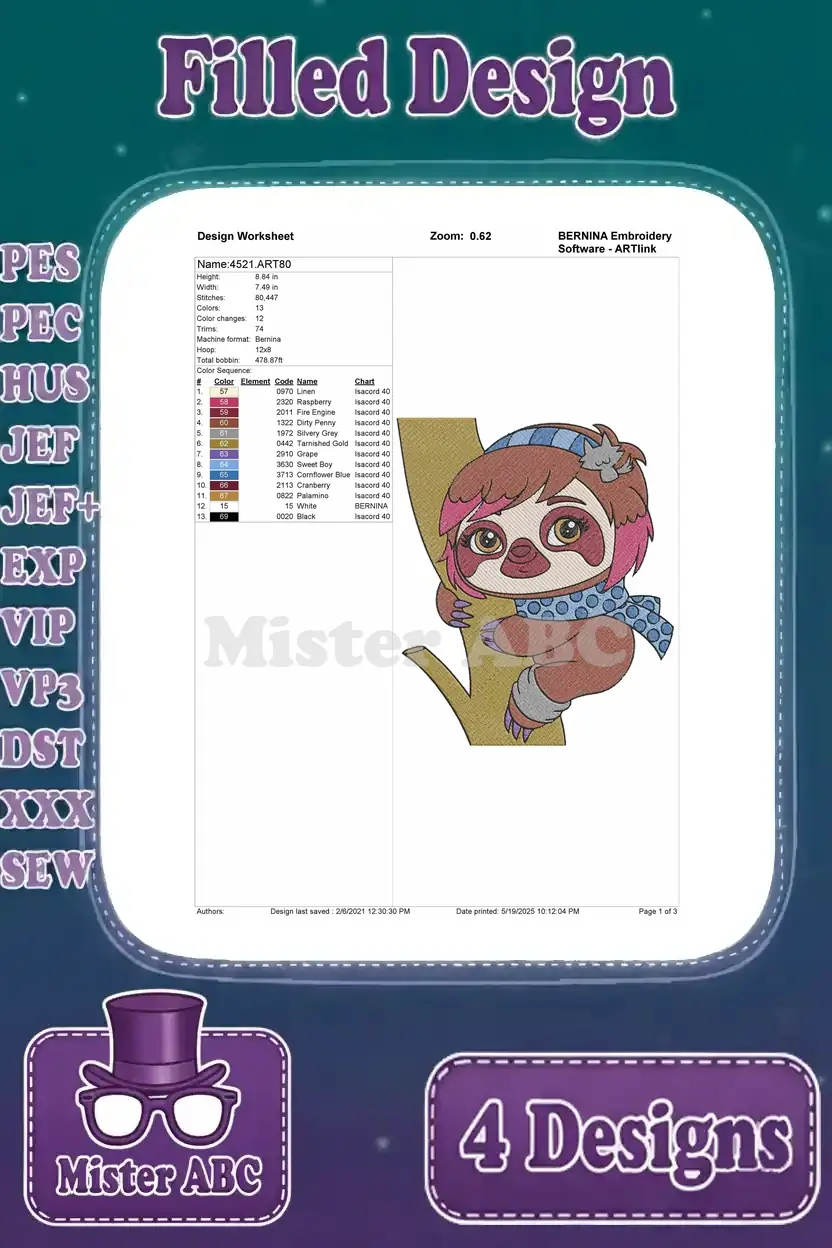 Disney Palace Pets Cinderellas Bibbidy Auroras Dreamy Belles Teacup Ariels Treasure Fern Sloth – Filled Embroidery Design