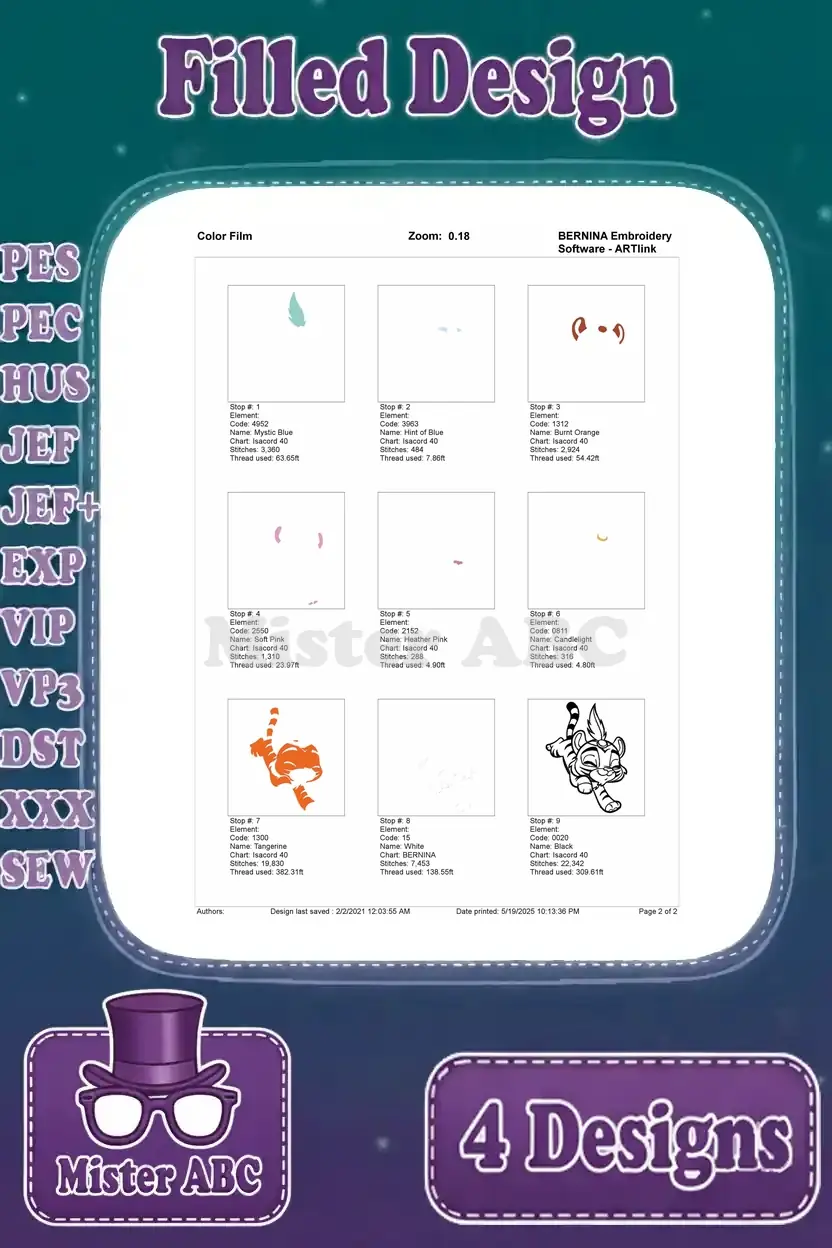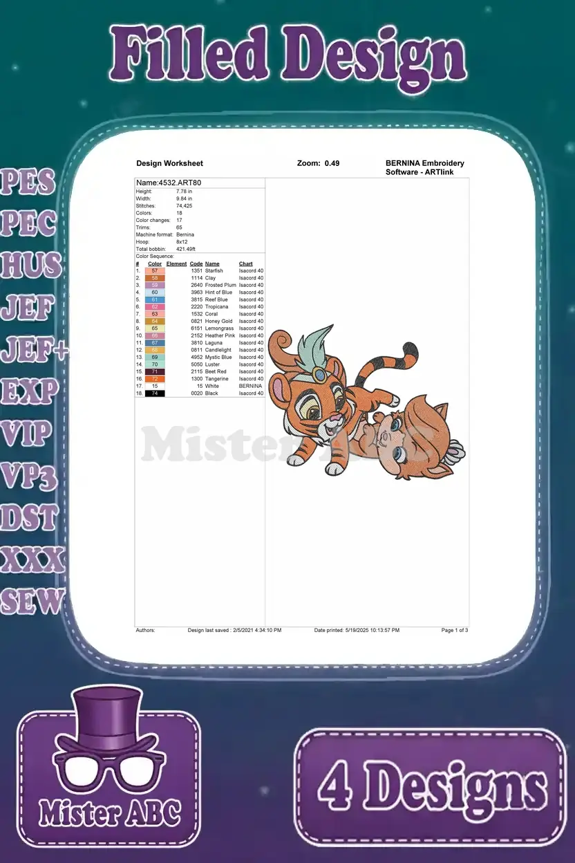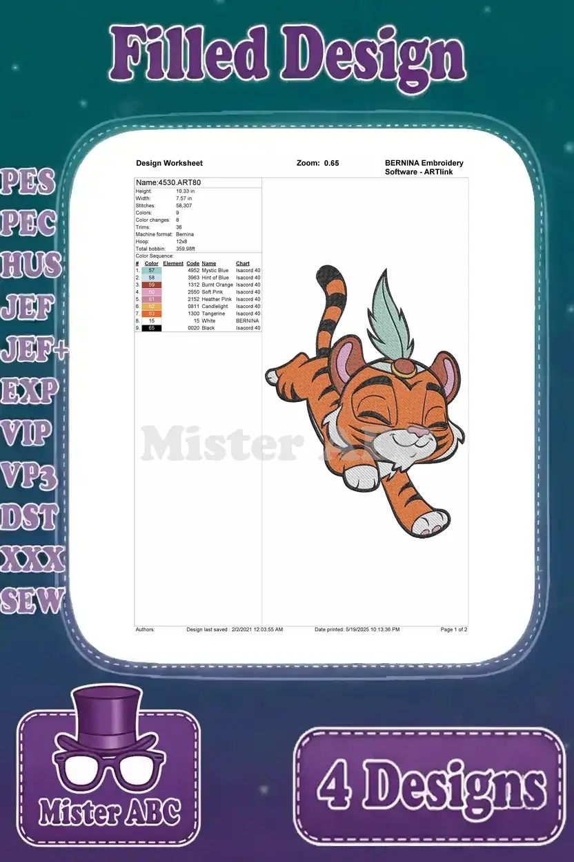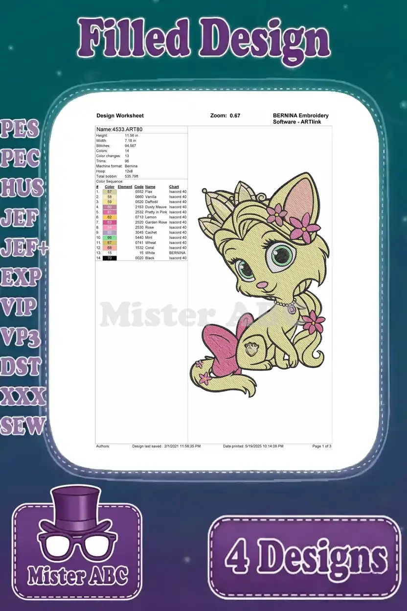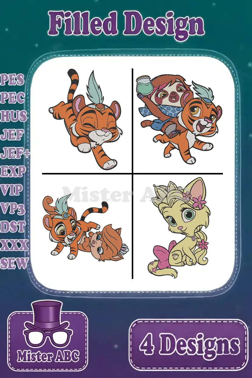 Disney Palace Pets Jasmines Sultan Taj Nyle And Mulans Cat Rouge Collection – Filled Embroidery Design