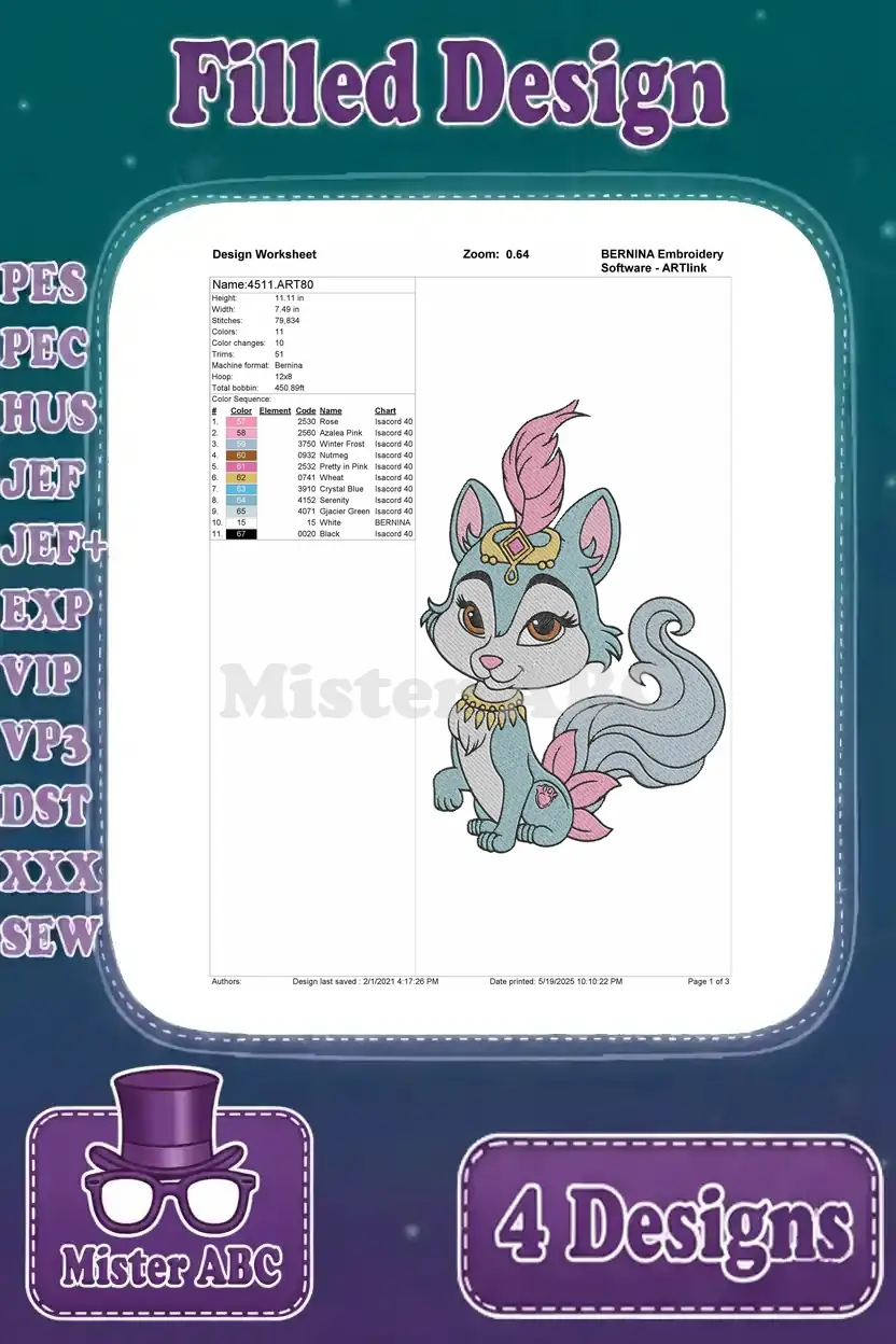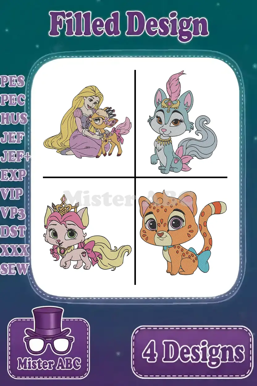 Disney Palace Pets Rapunzels Summer Jasmines Sultan Pocahontas Windflower Auroras Nuzzles – Filled Embroidery Design