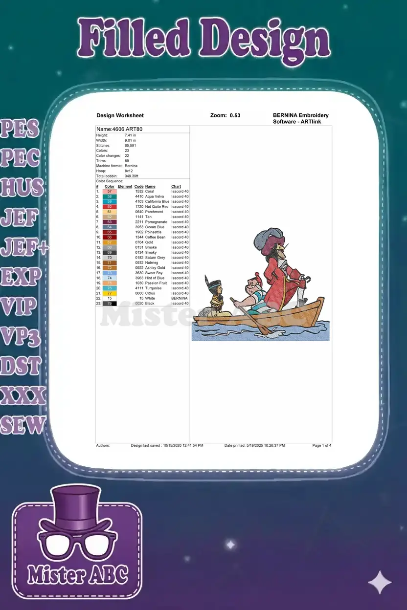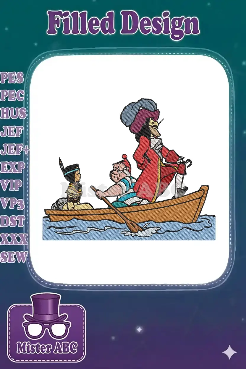 Disney Peter Pan Captain Hook Smee Tiger Lily boat embroidery designs
