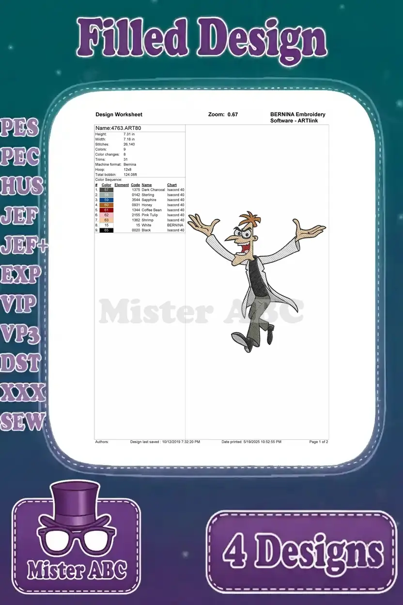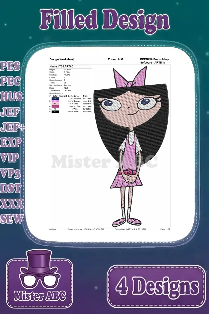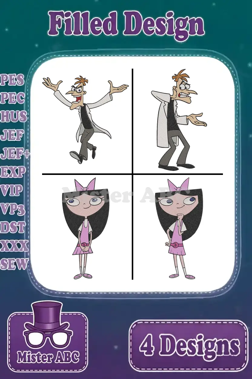 Disney Phineas And Ferb Dr Doofenshmirtz Isabella Garcia Shapiro Fireside Girls Set – Filled Embroidery Design