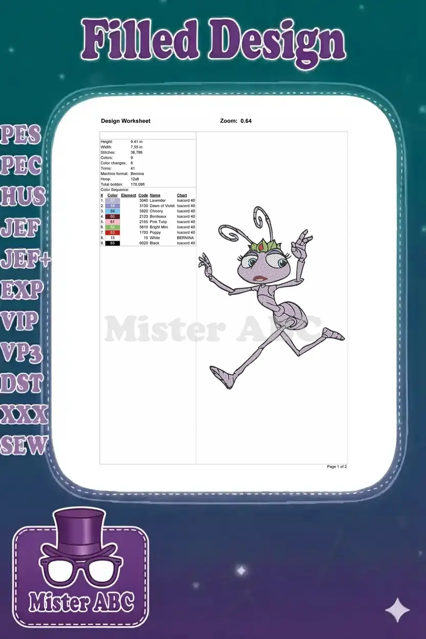 Disney Pixar Bugs Life Princess Atta running ant embroidery designs