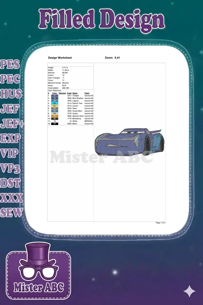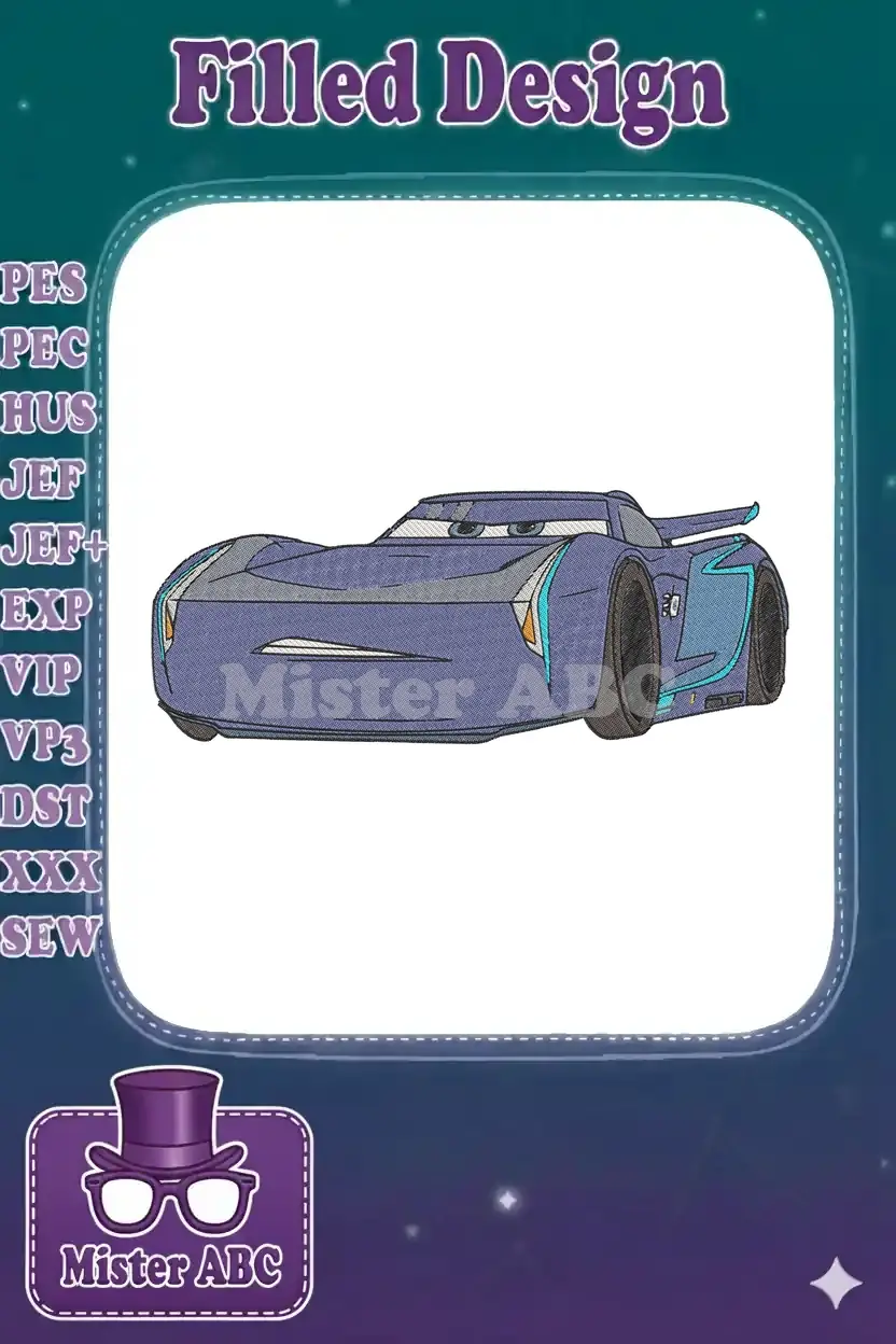 Disney Pixar Cars Cruz Ramirez Purple Race Car Embroidery Designs