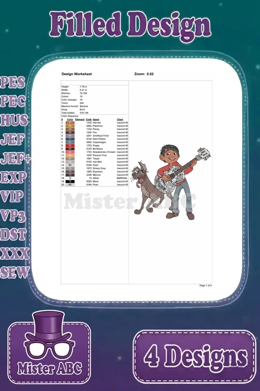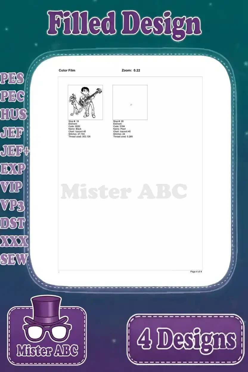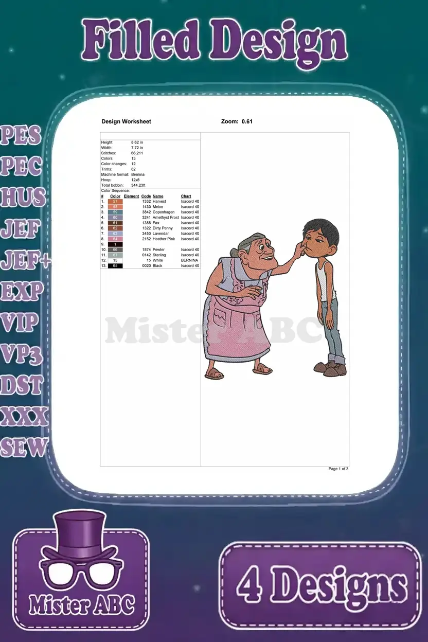 Disney Pixar Coco Abuelita Miguel Dante Mama Imelda Family Musical Journey Collection – Filled Embroidery Design