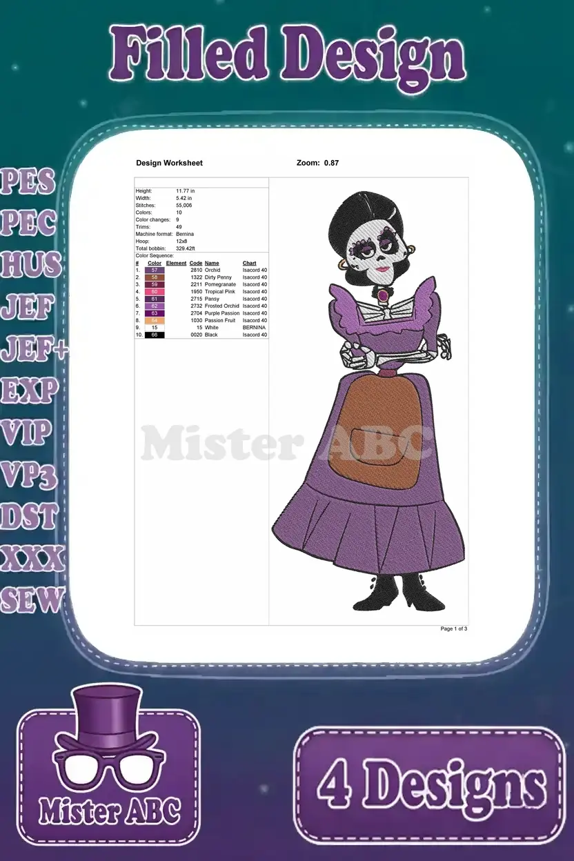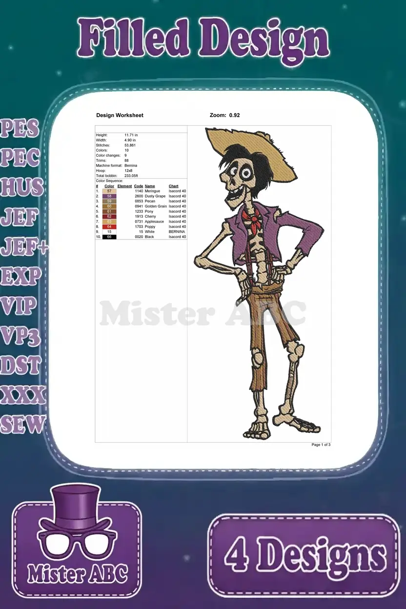 Disney Pixar Coco Hector Rivera Mama Imelda Papa Julio Land Of The Dead Family Bundle – Filled Embroidery Design