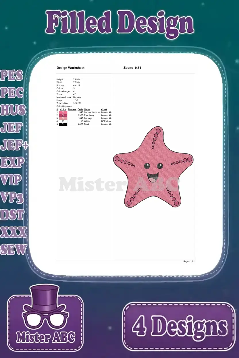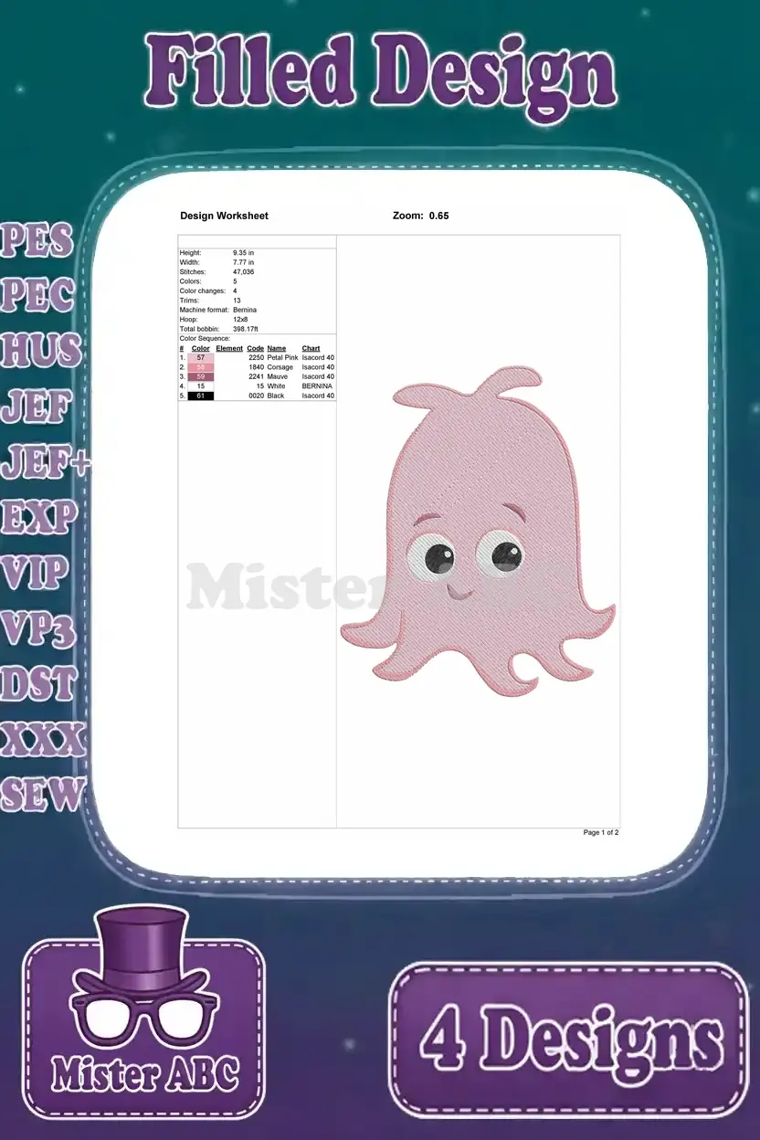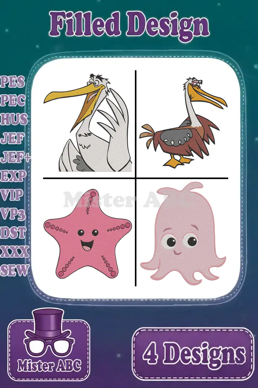 Disney Pixar Finding Nemo Nigel Pelican Peach Starfish Pearl Octopus Ocean Designs – Filled Embroidery Design