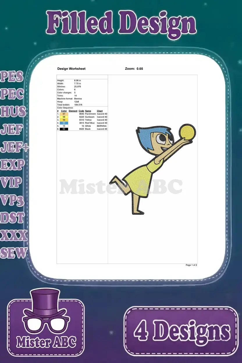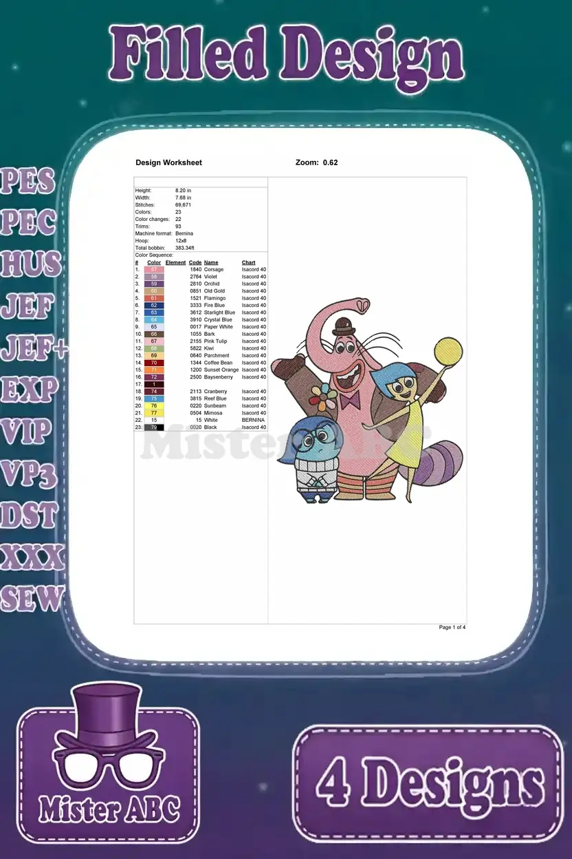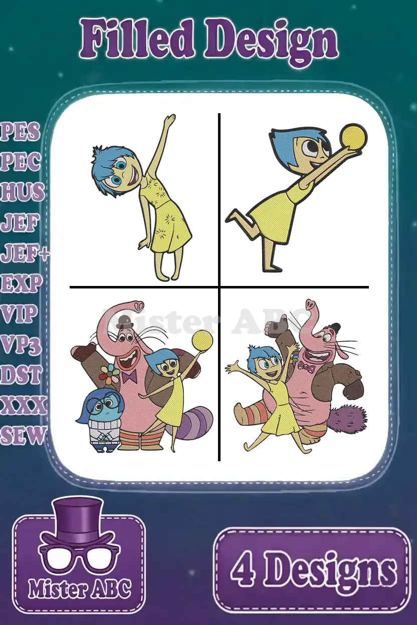 Disney Pixar Inside Out Joy Bing Bong Sadness Emotions Group Interactions Set – Filled Embroidery Design