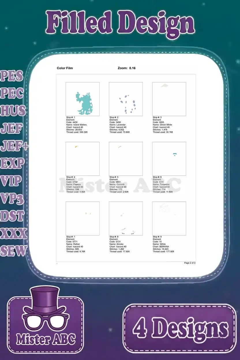 | Stitches | Colors | Thread Changes |