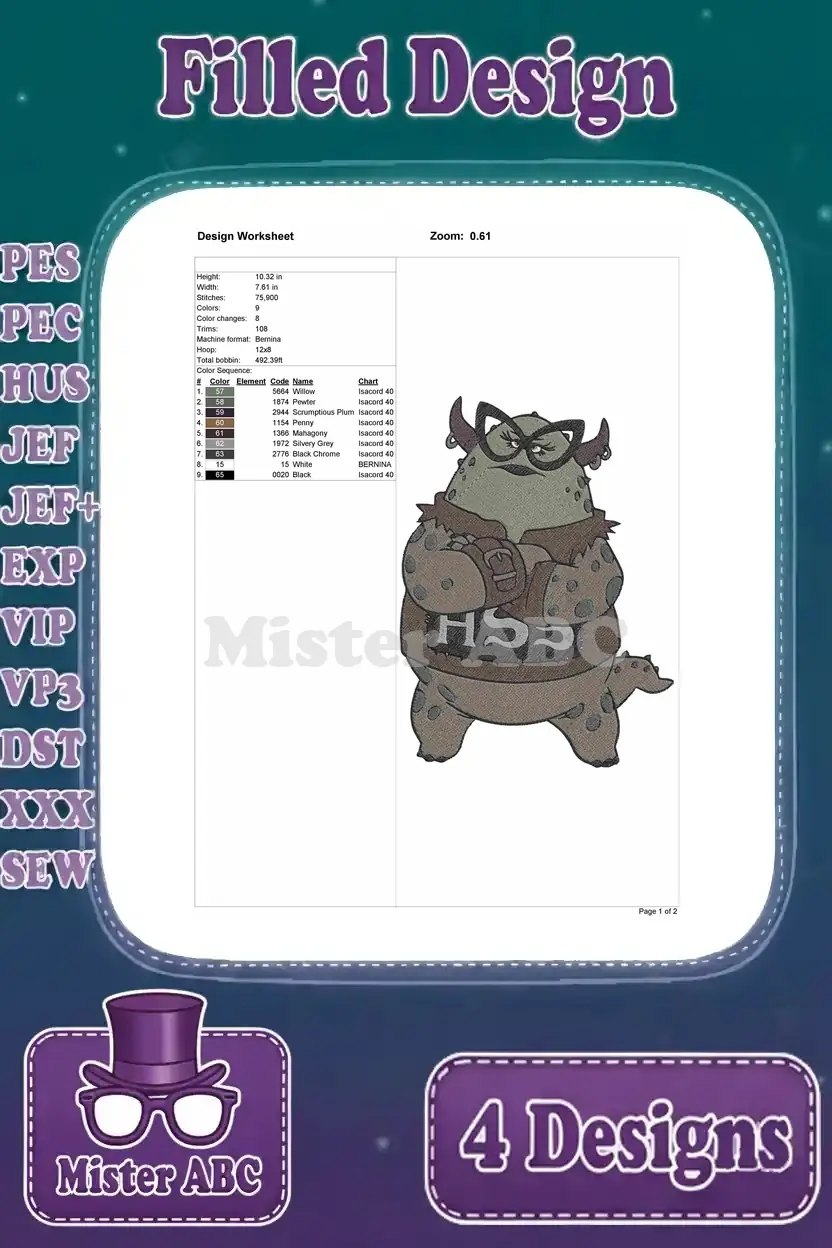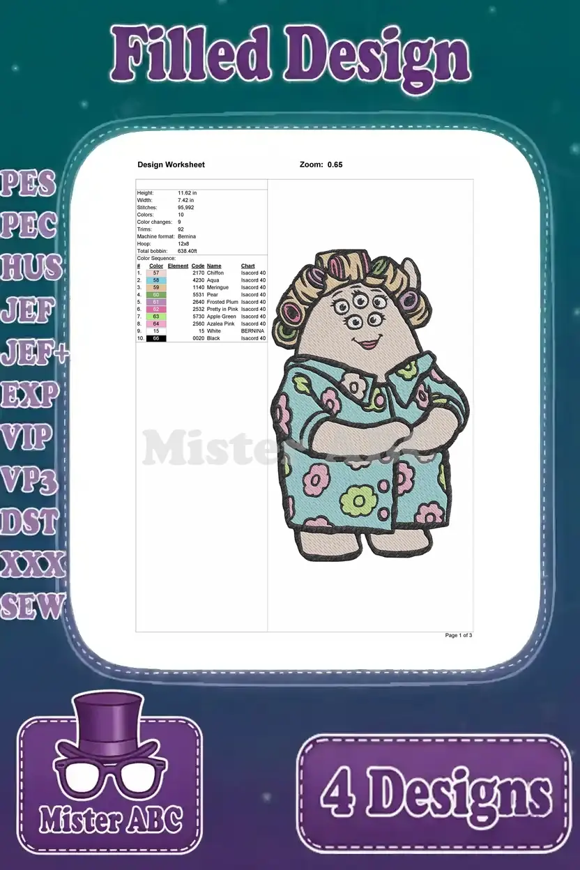Disney Pixar Monsters University Dean Hardscrabble Mrs Graves Sheri Squibbles Faculty - Filled Embroidery Design - Instant Download Disney Pixar Monsters University Dean Hardscrabble Mrs Graves Sheri Squibbles Faculty – Filled Embroidery Design – Instant Download