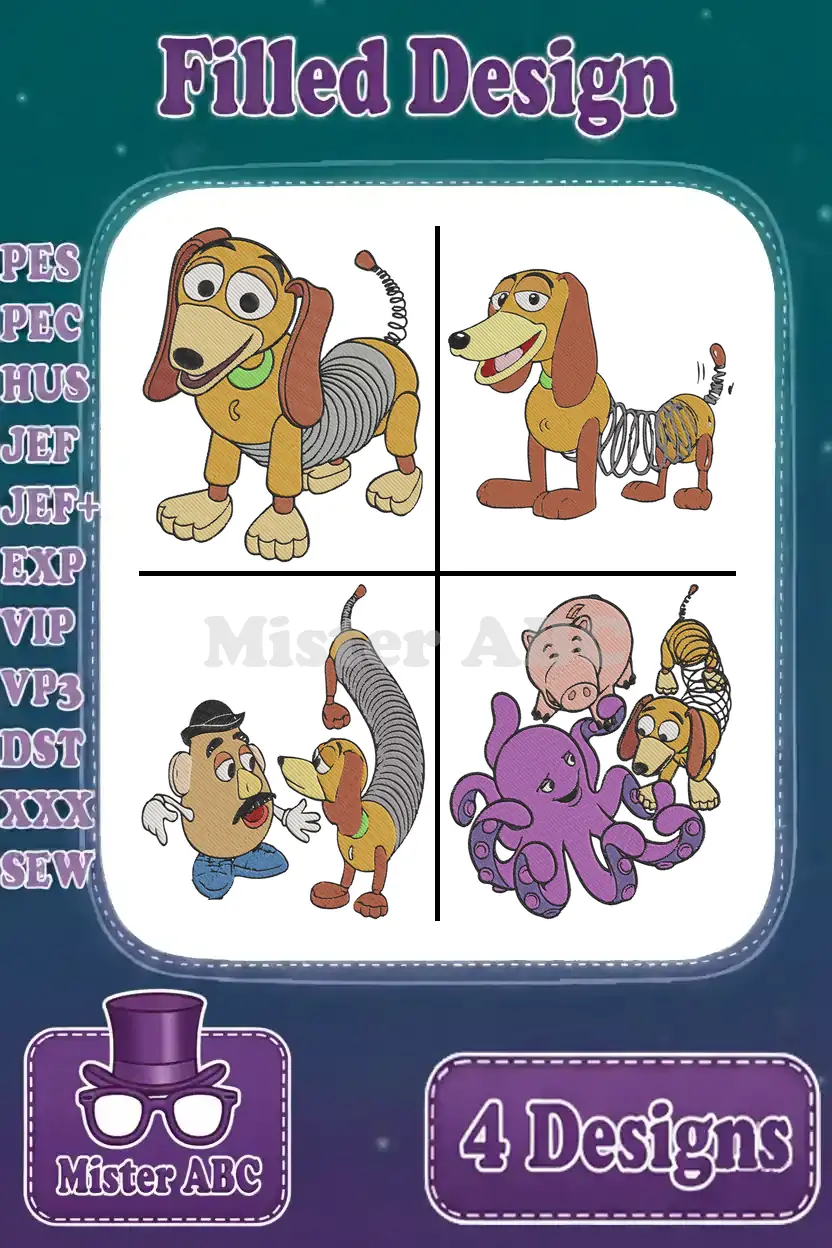 Disney Pixar Toy Story Slinky Dog Mr Potato Head Alien Toys Character Group Collection – Filled Embroidery Design