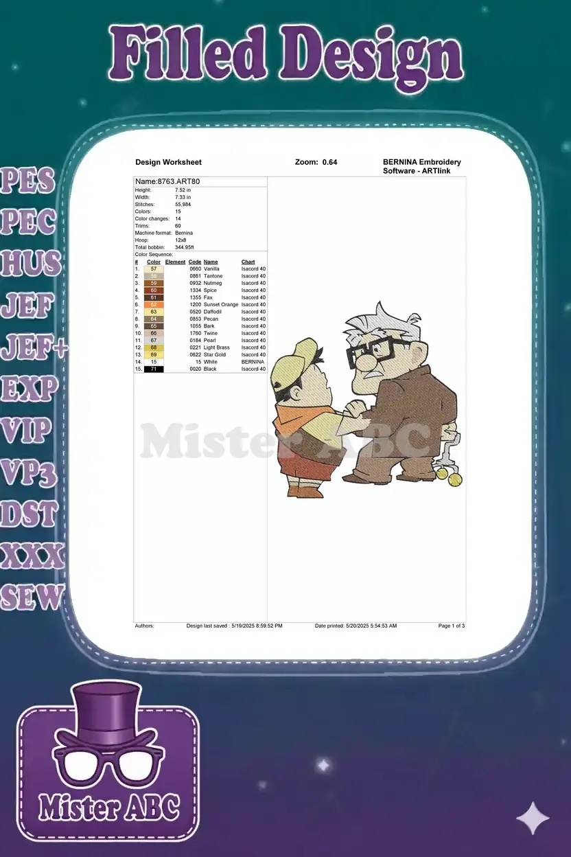 Disney Pixar Up Carl Fredricksen Russell character embroidery designs