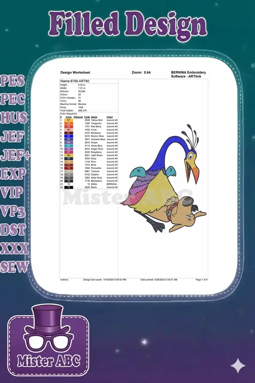Disney Pixar Up Kevin and Dug funny cartoon embroidery designs