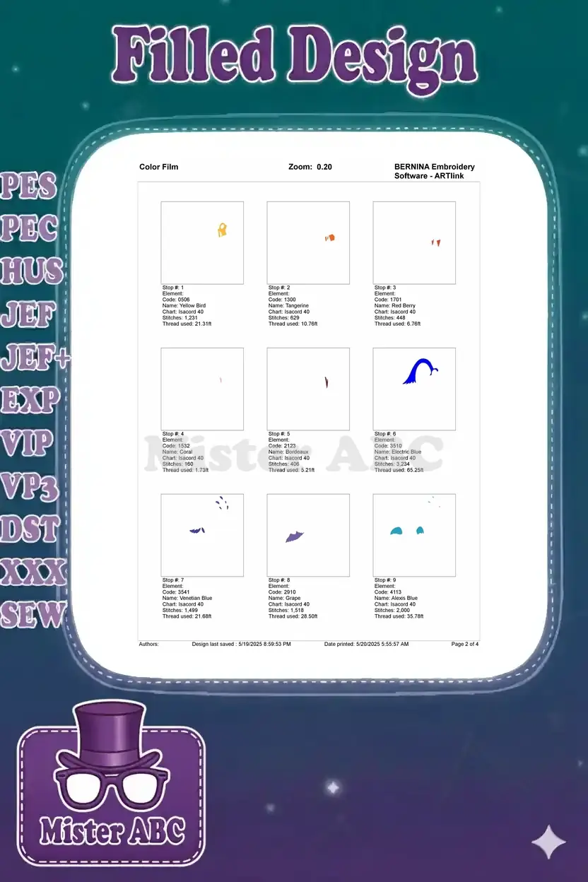 | Stitches | Colors | Thread Changes |
