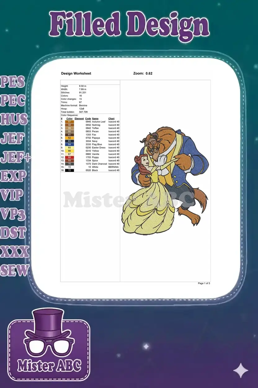 Disney Princess Belle and Beast Romantic Dance Embroidery Designs
