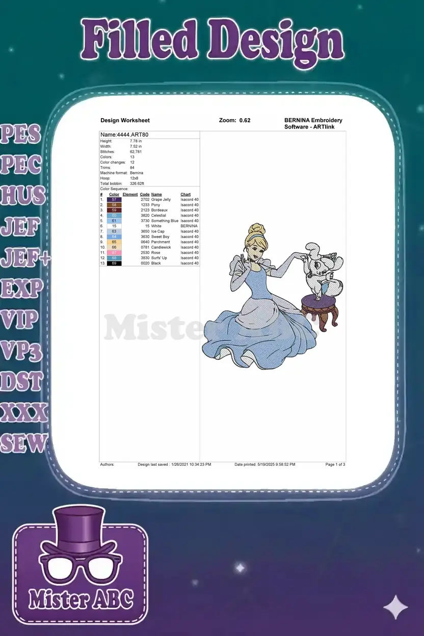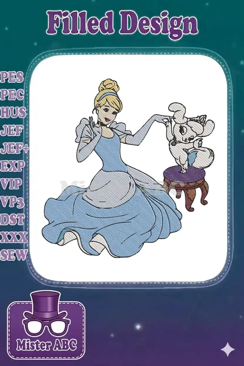 Disney Princess Cinderella with Gus mouse elegant embroidery designs