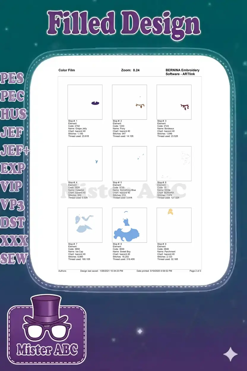 | Stitches | Colors | Thread Changes |