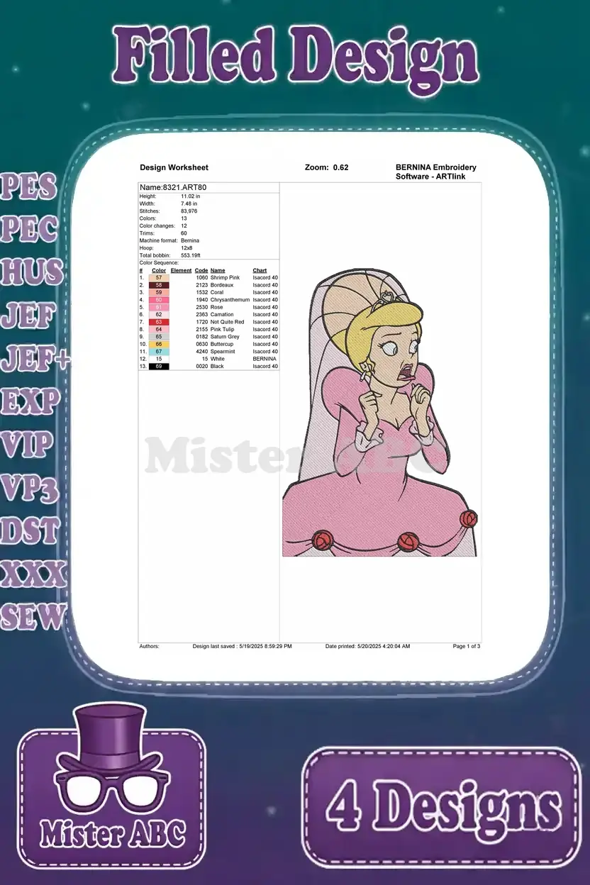 Disney Princess And Frog Charlotte La Bouff Pink Dress Red Hat Close Ups Designs – Filled Embroidery Design