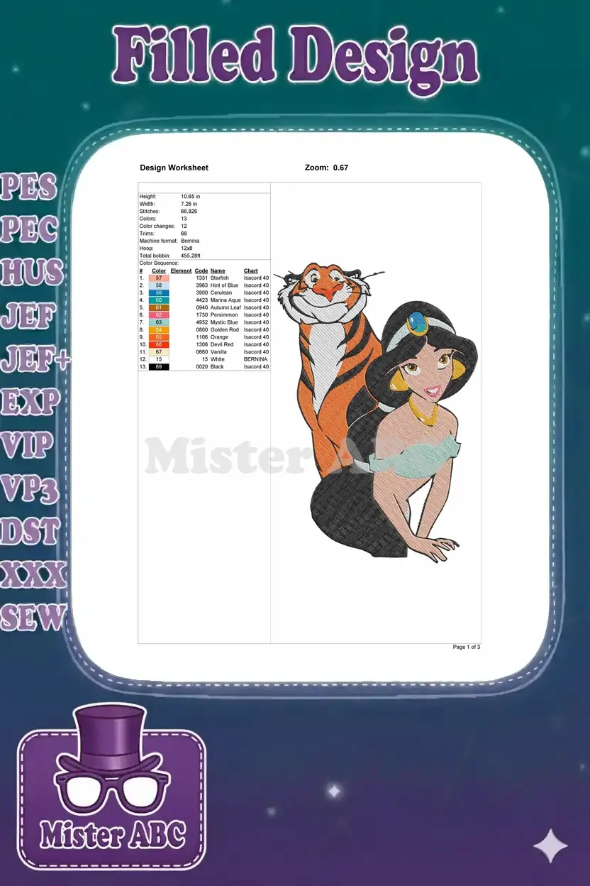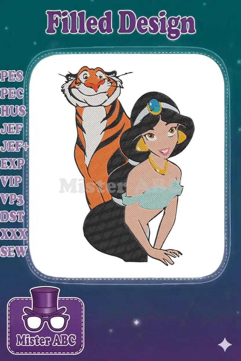 Disney Princess Jasmine and Rajah Tiger Embroidery Designs