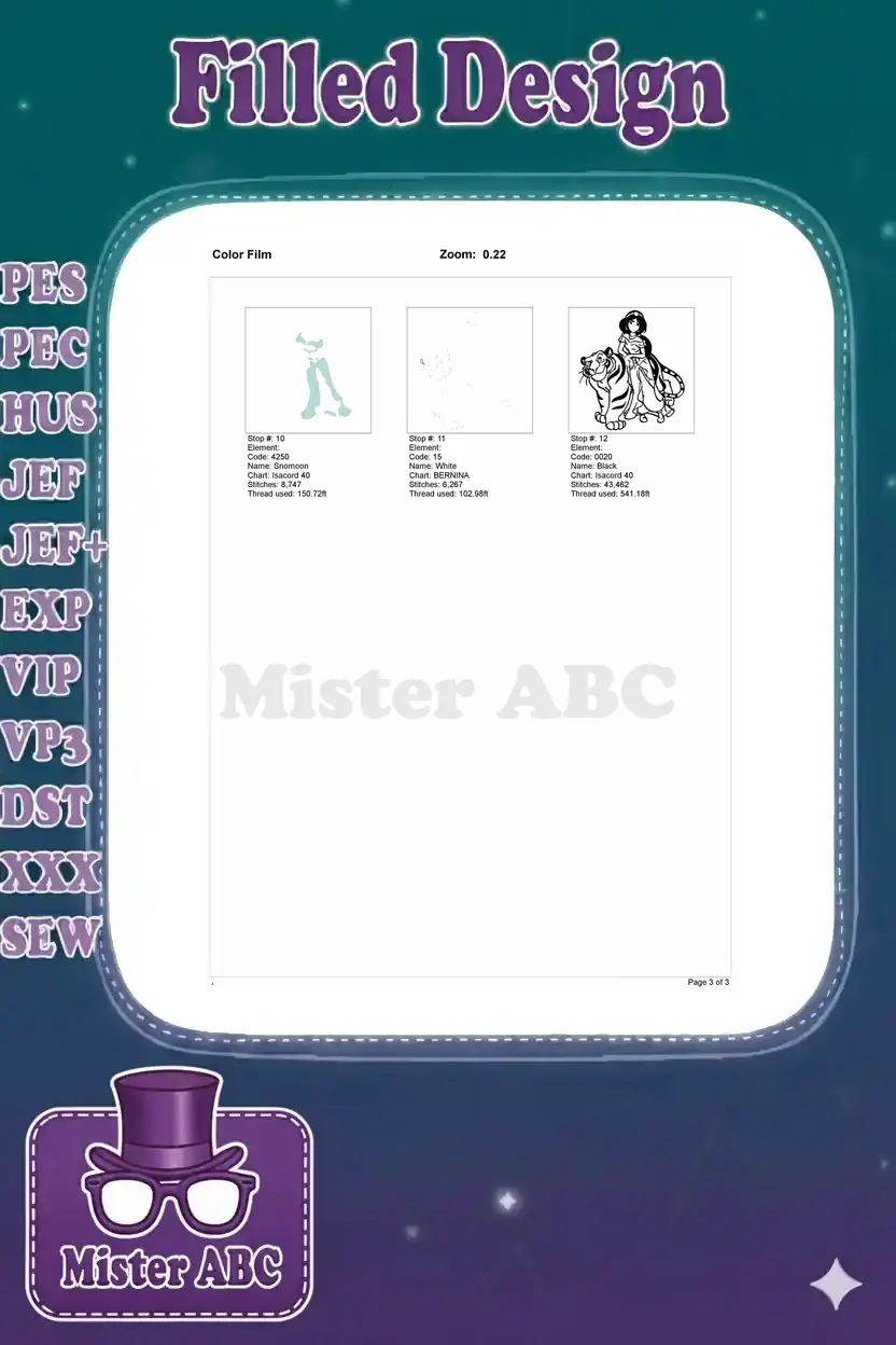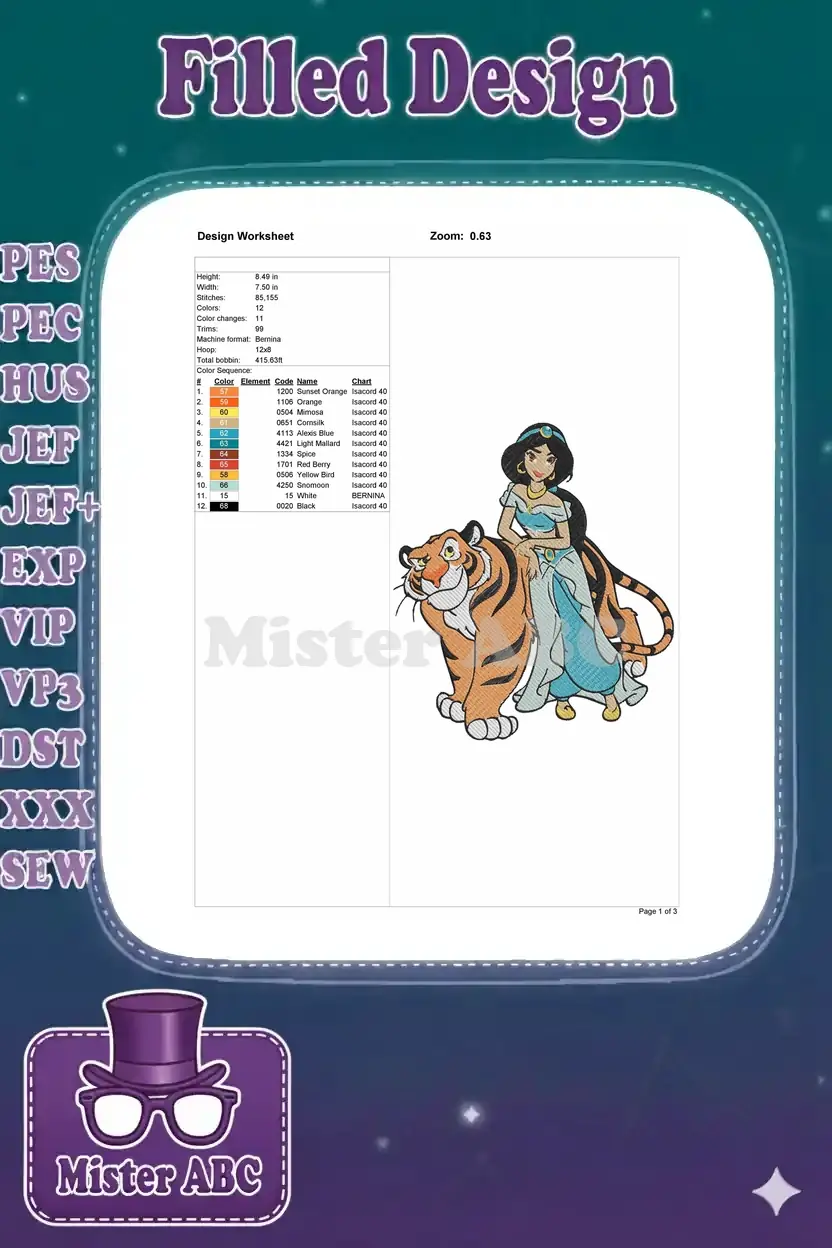 Disney Princess Jasmine and Rajah the Tiger Embroidery Designs