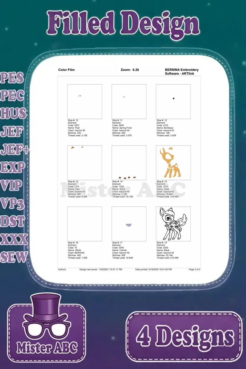 Disney Princess Palace Pets Beauty Cat Aurora Fern Deer Cute Animal Friends Collection – Filled Embroidery Design