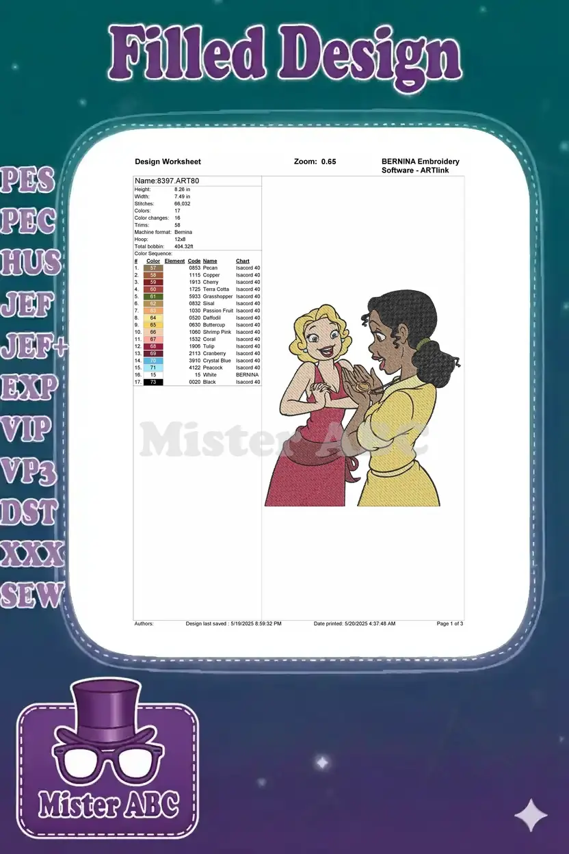 Disney Princess Tiana Charlotte Golden Locket Friendship Embroidery Designs
