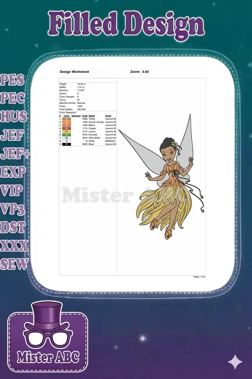 Disney Rosetta Fairy Nature Flower Orange Dress Embroidery Designs