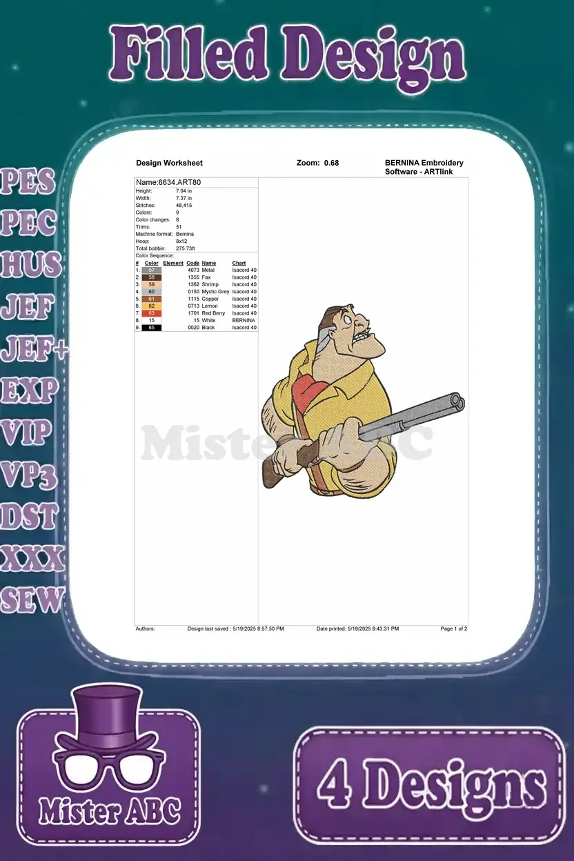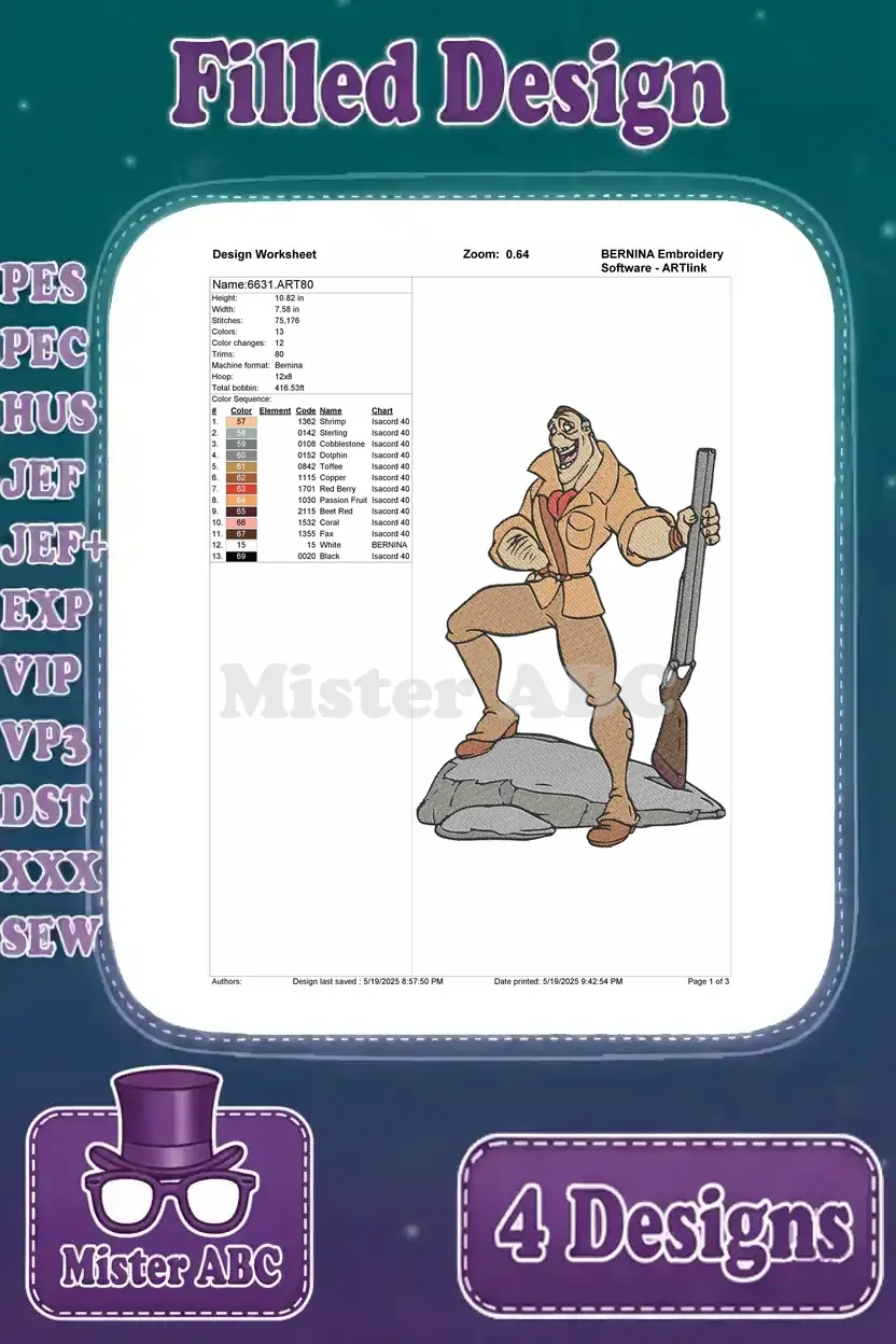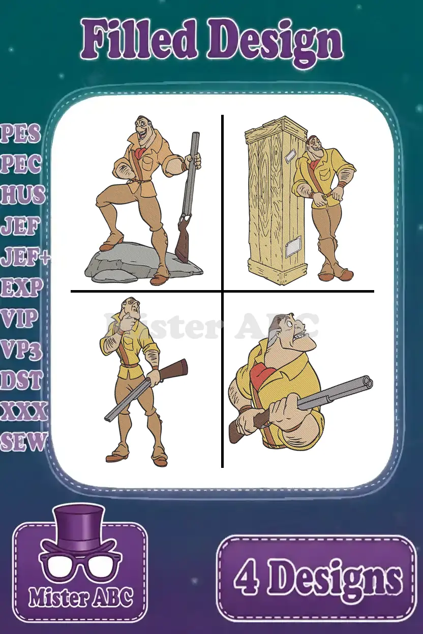 Disney Tarzan Clayton Hunter Villain With Gun In Crate Poses Jungle Collection – Filled Embroidery Design