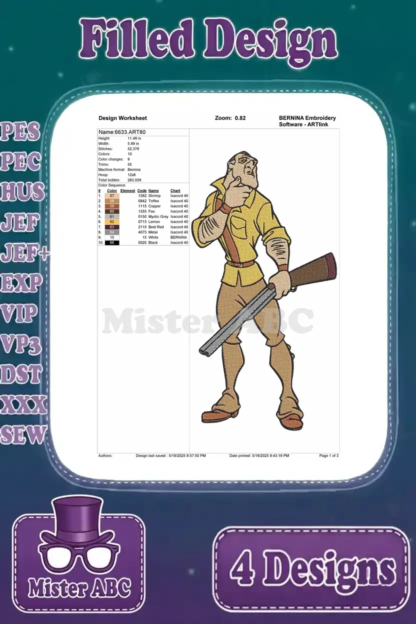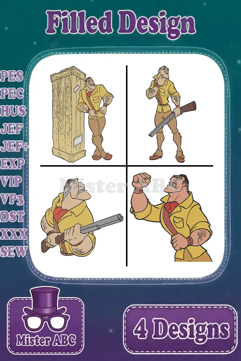 Disney Tarzan Clayton Villain Hunter With Rifle Confident Menacing Poses – Filled Embroidery Design