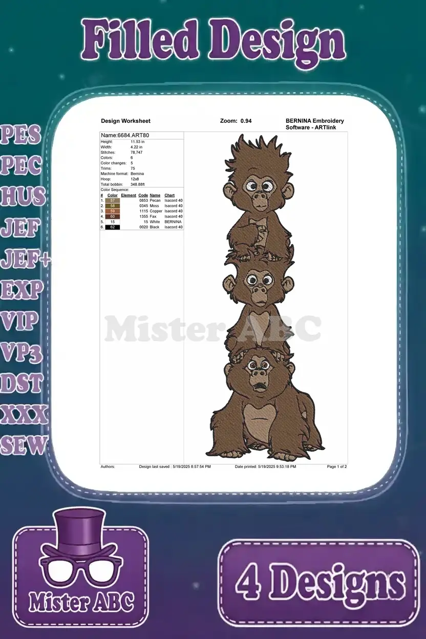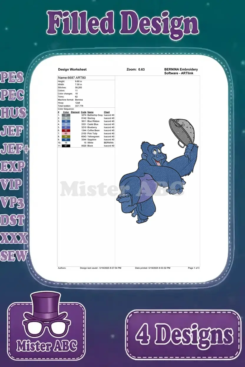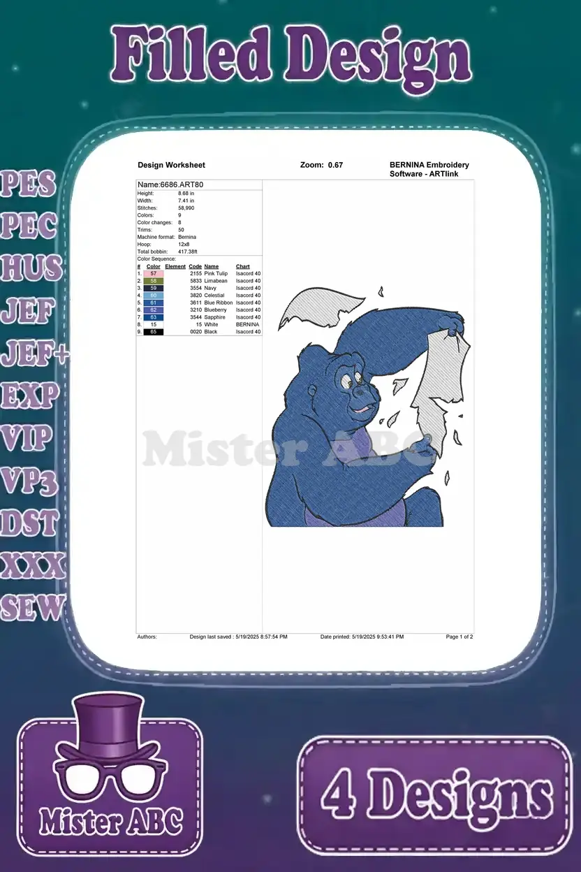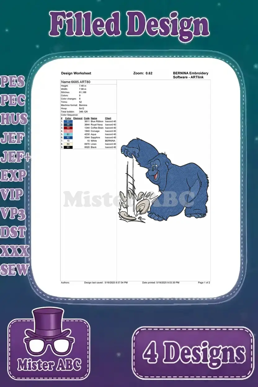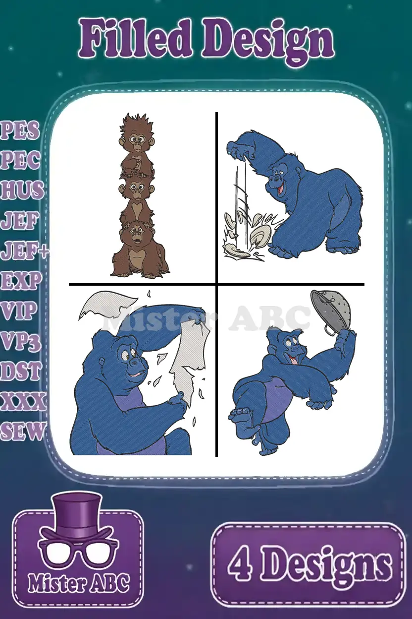 Disney Tarzan Kerchak Gorilla Leader Baby Tarzan Stack Jungle Hierarchy – Filled Embroidery Design