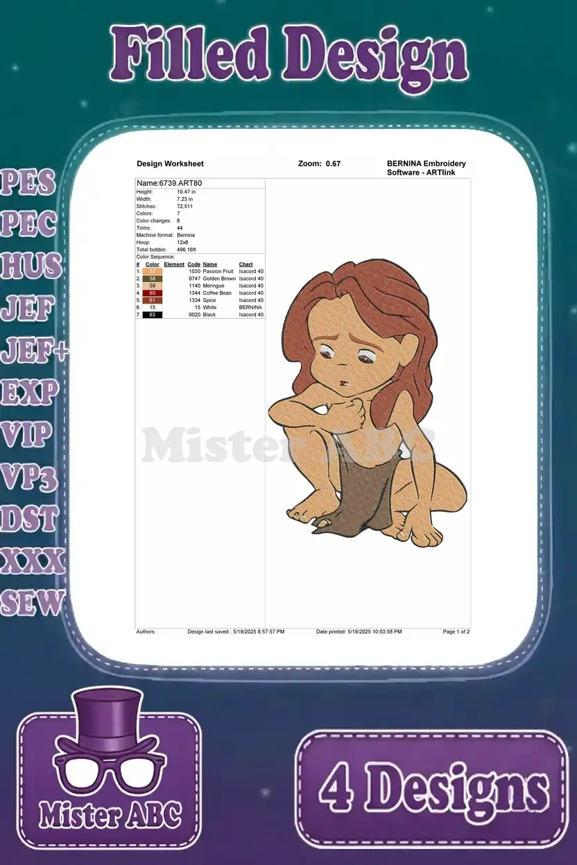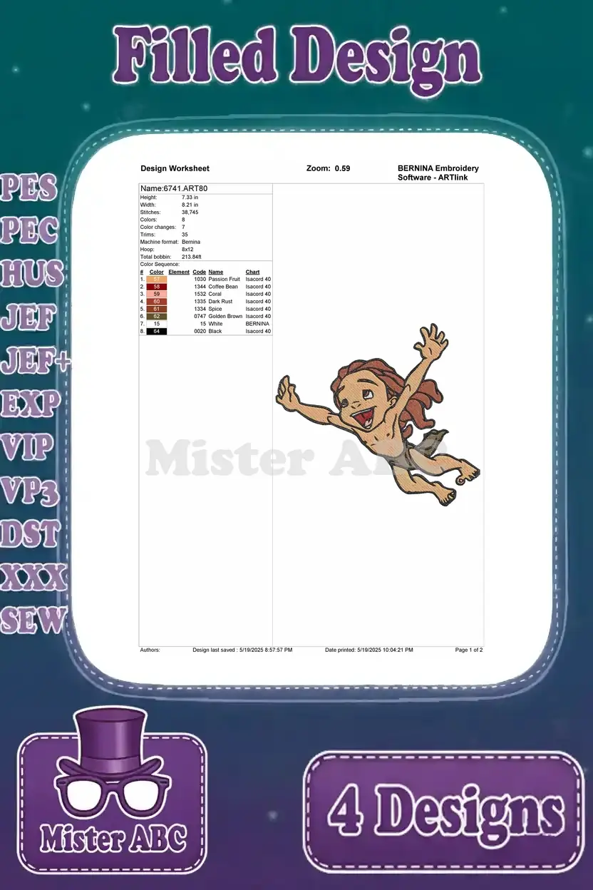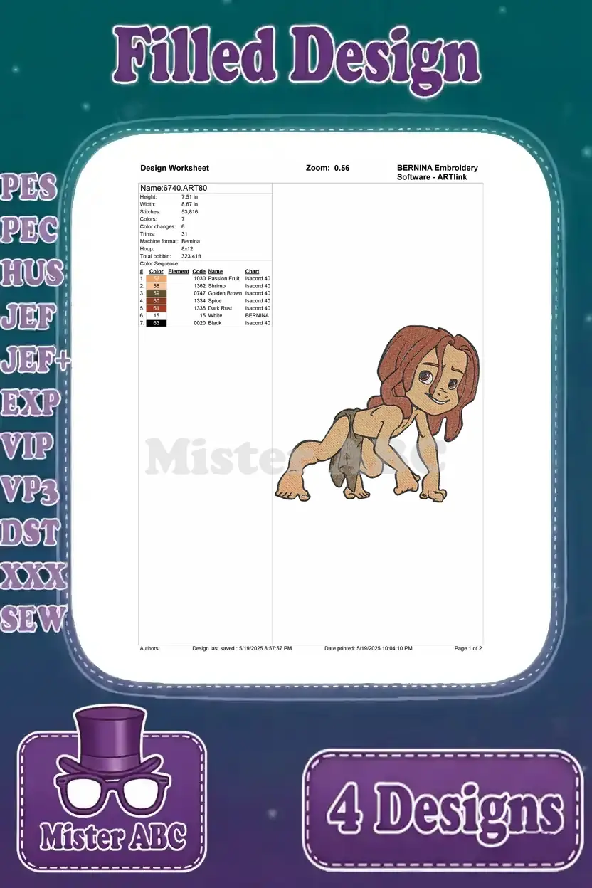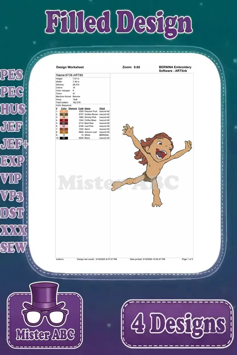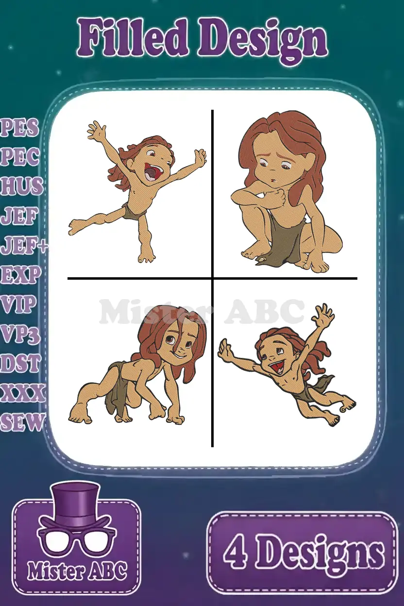 Disney Tarzan Young Jungle Boy Tarzan Playful Curious And Adventurous Poses – Filled Embroidery Design