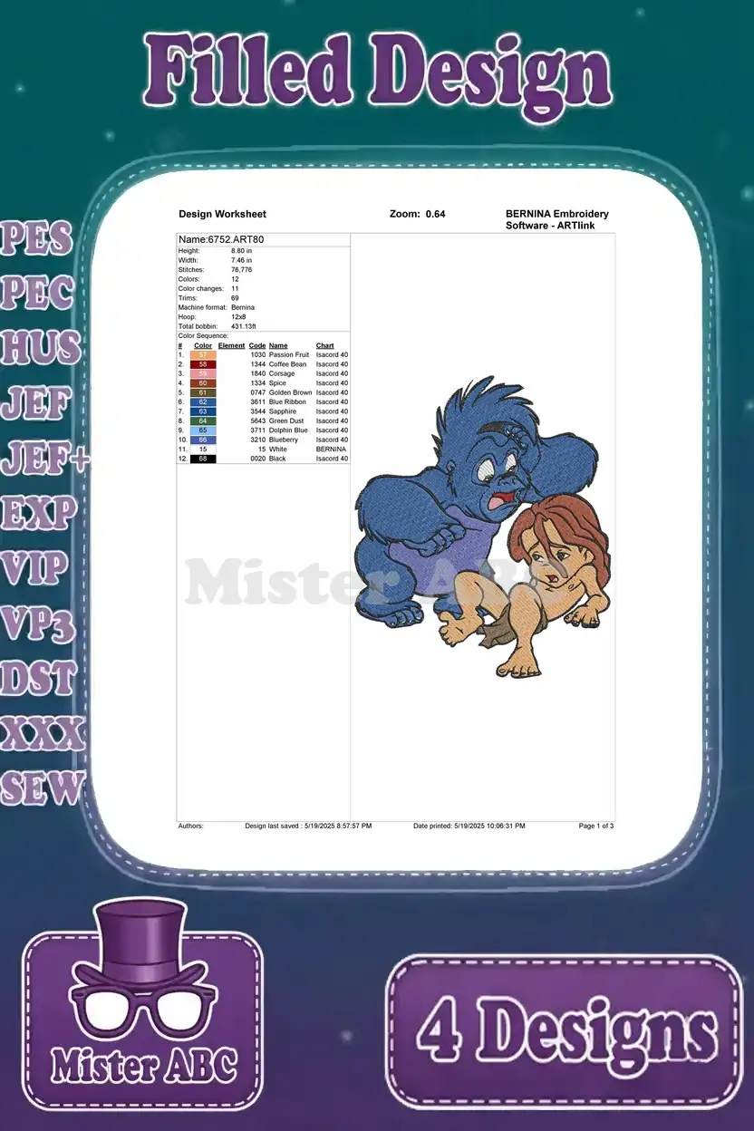 Experience the charm of the jungle with this delightful Tarzan-themed embroidery bundle! Four filled designs capture iconic moments, perfect for adding a touch of adventure to any project.