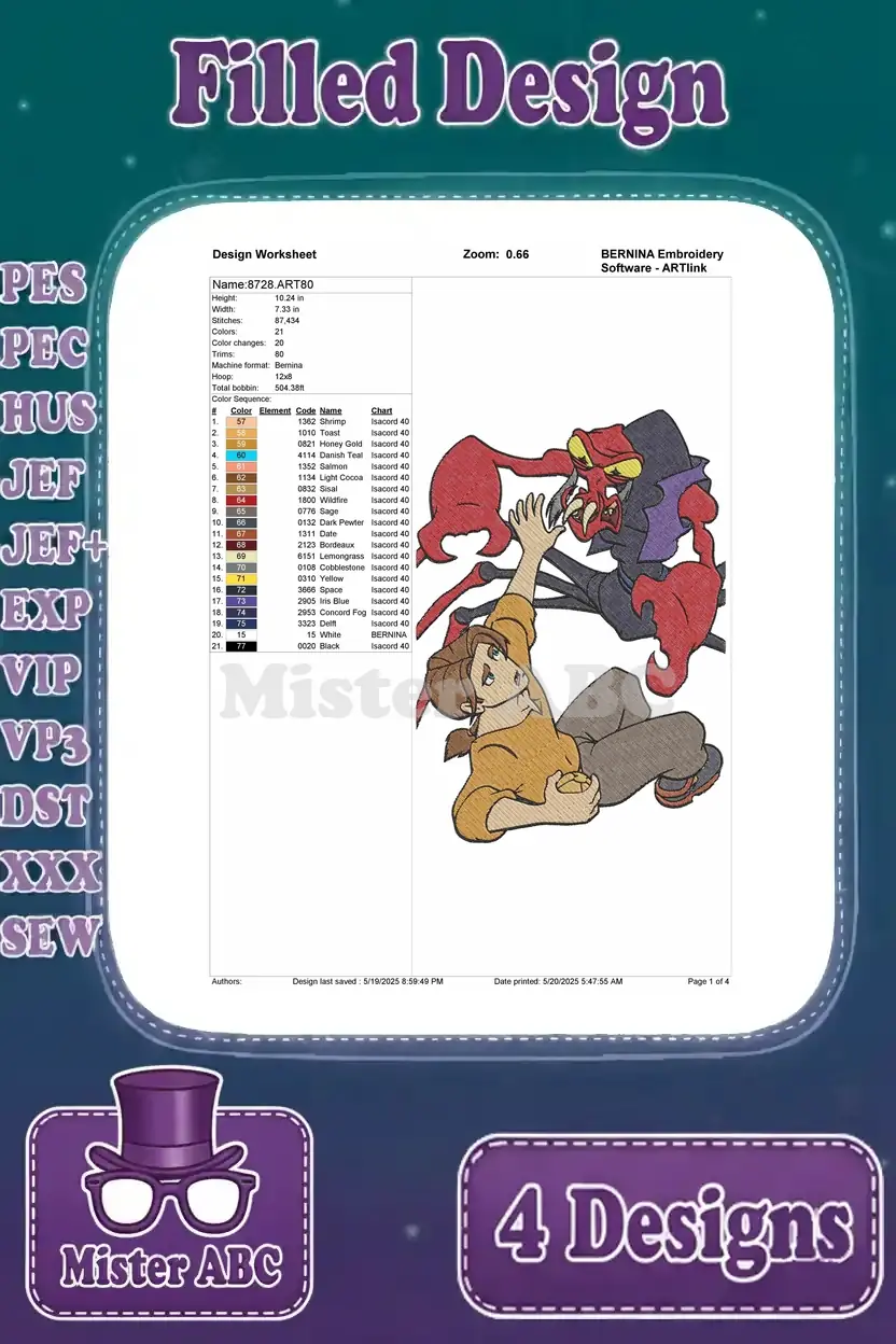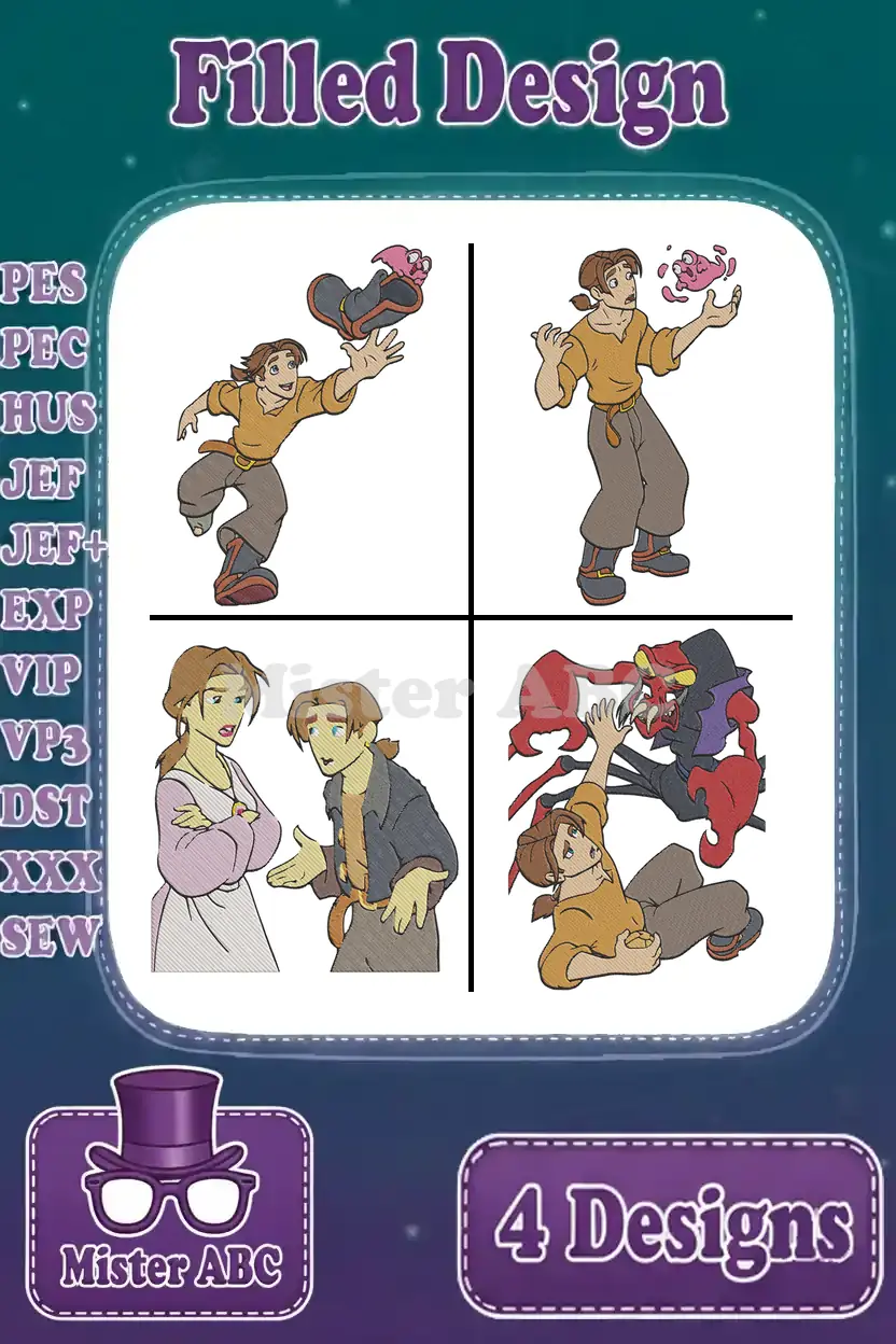 Disney Treasure Planet Jim Hawkins Sarah Hawkins John Silver Captain Flint Crew Bundle – Filled Embroidery Design