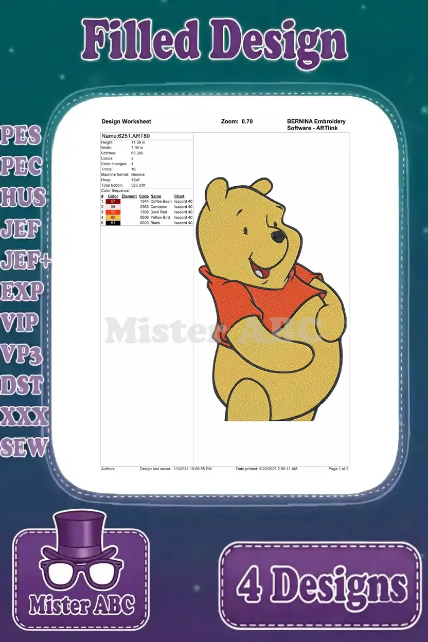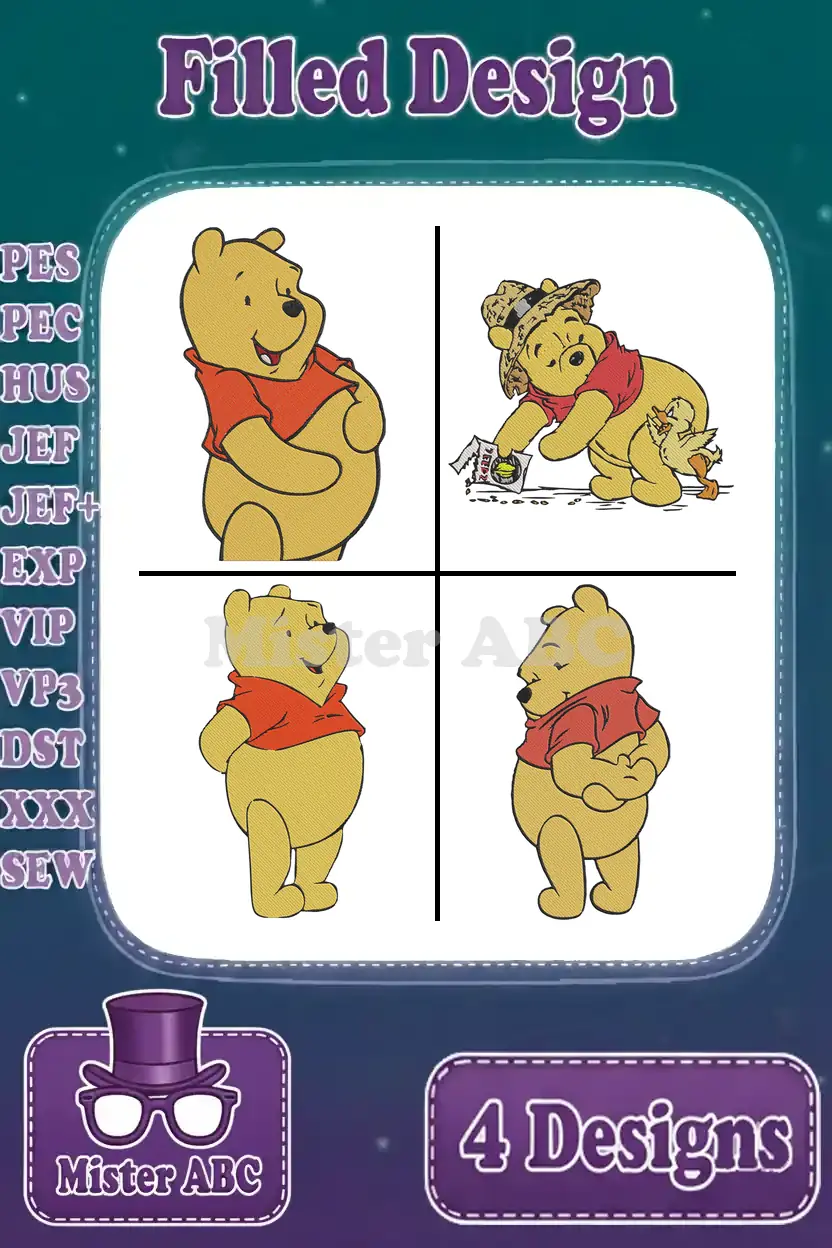 Disney Winnie Pooh Bear Hugging Self With Cowboy Hat Thinking About Honey Collection – Filled Embroidery Design