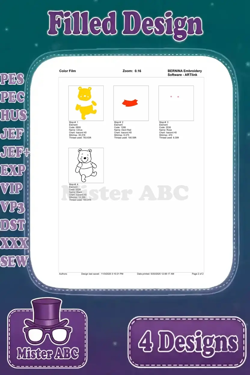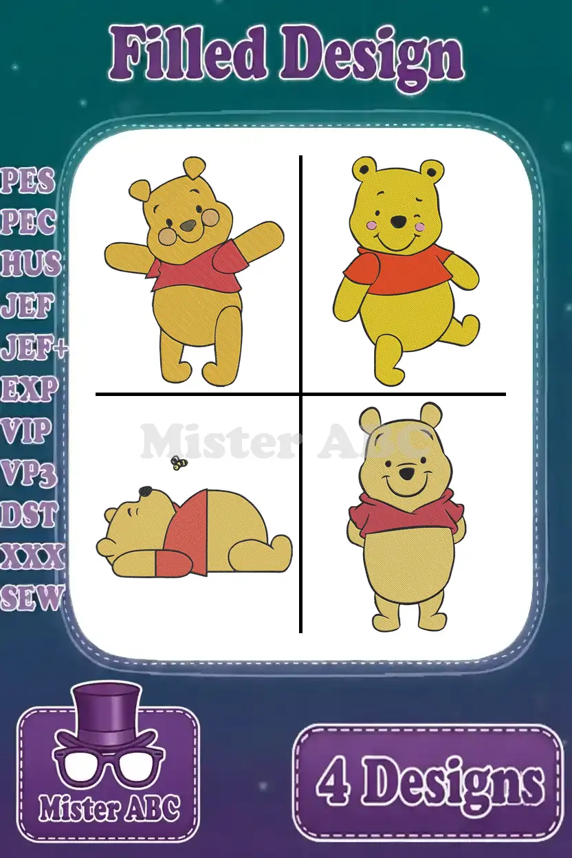Disney Winnie Pooh Bear Waving Sleeping Standing Happy Go Lucky Character – Filled Embroidery Design