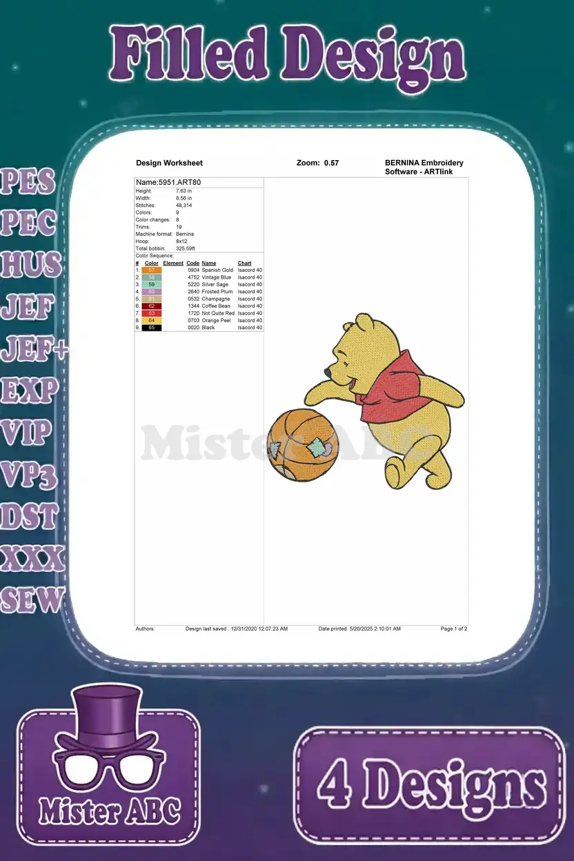 Disney Winnie Pooh Bear Playing Basketball In Bathtub Bee Costume Fun Collection – Filled Embroidery Design