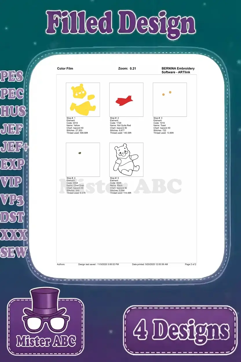 Charming Winnie the Pooh embroidery bundle with four adorable filled designs. Add Hundred Acre Wood magic to your projects!