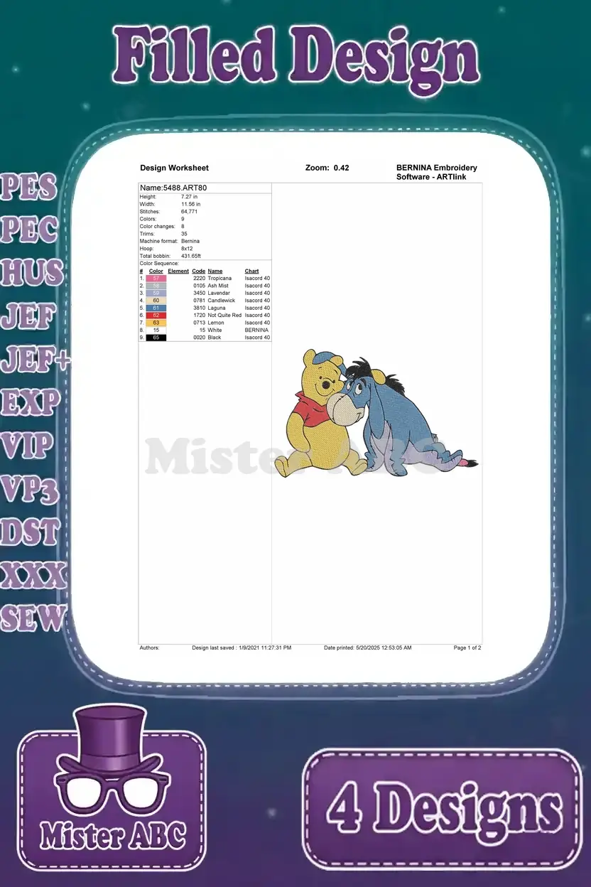 Disney Winnie Pooh And Eeyore Close Up Affectionate Hugs Friendship Moments – Filled Embroidery Design