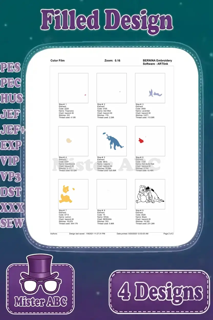 | Stitches | Colors | Thread Changes |