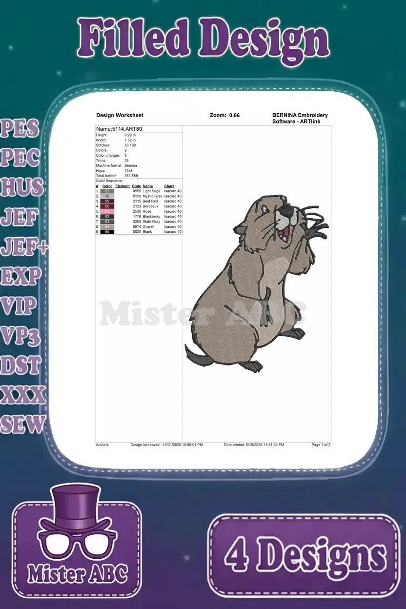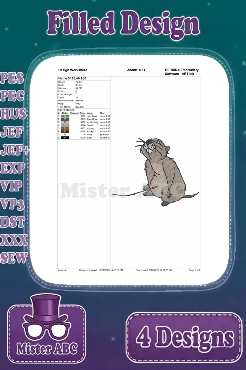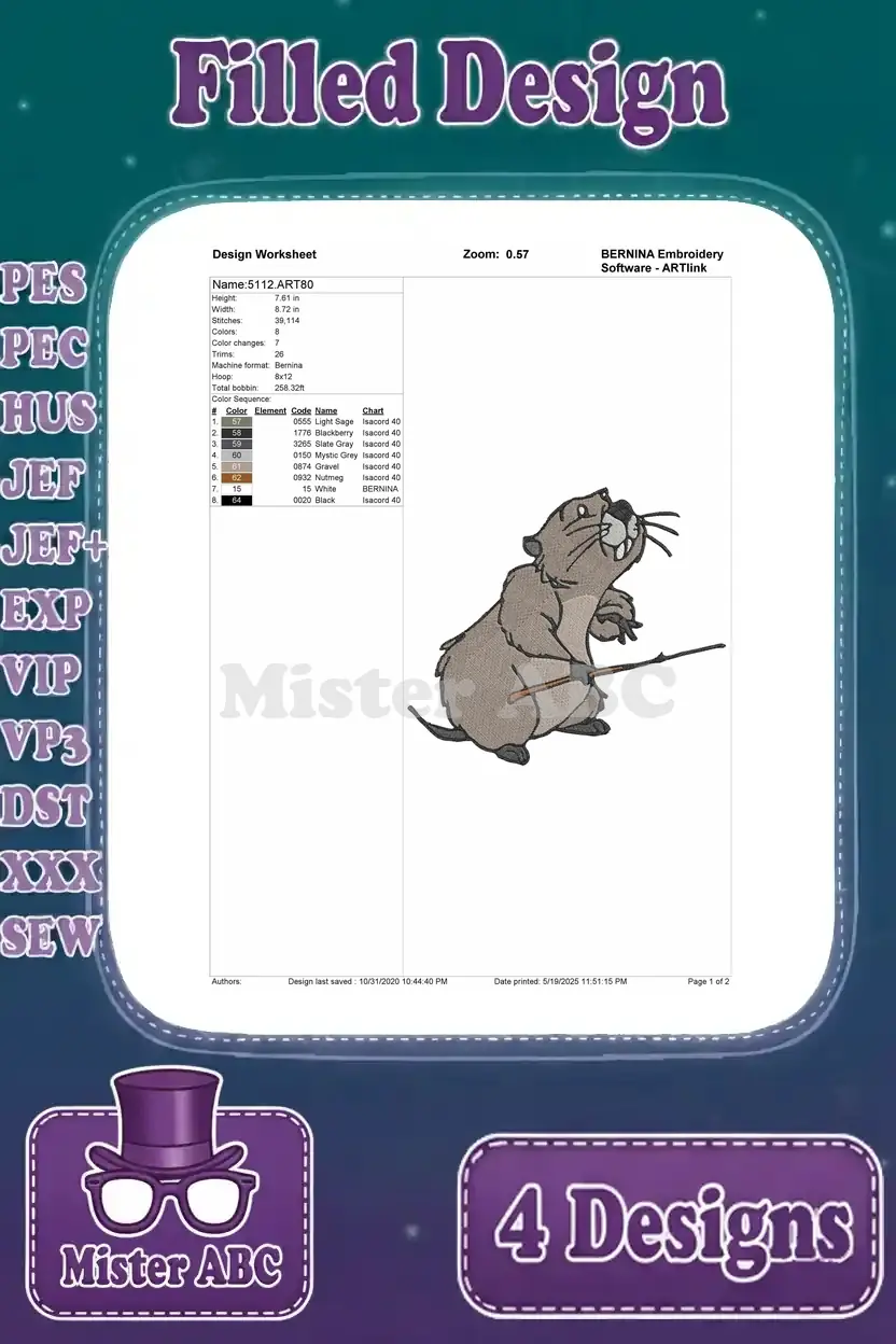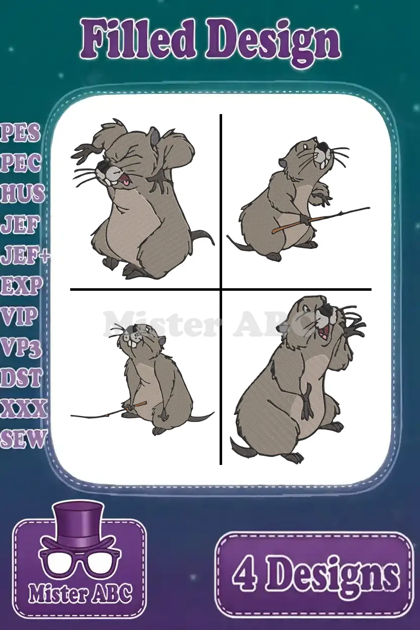 Disney Winnie Pooh Gopher Holding String Directing Conductor Poses Groundhog – Filled Embroidery Design