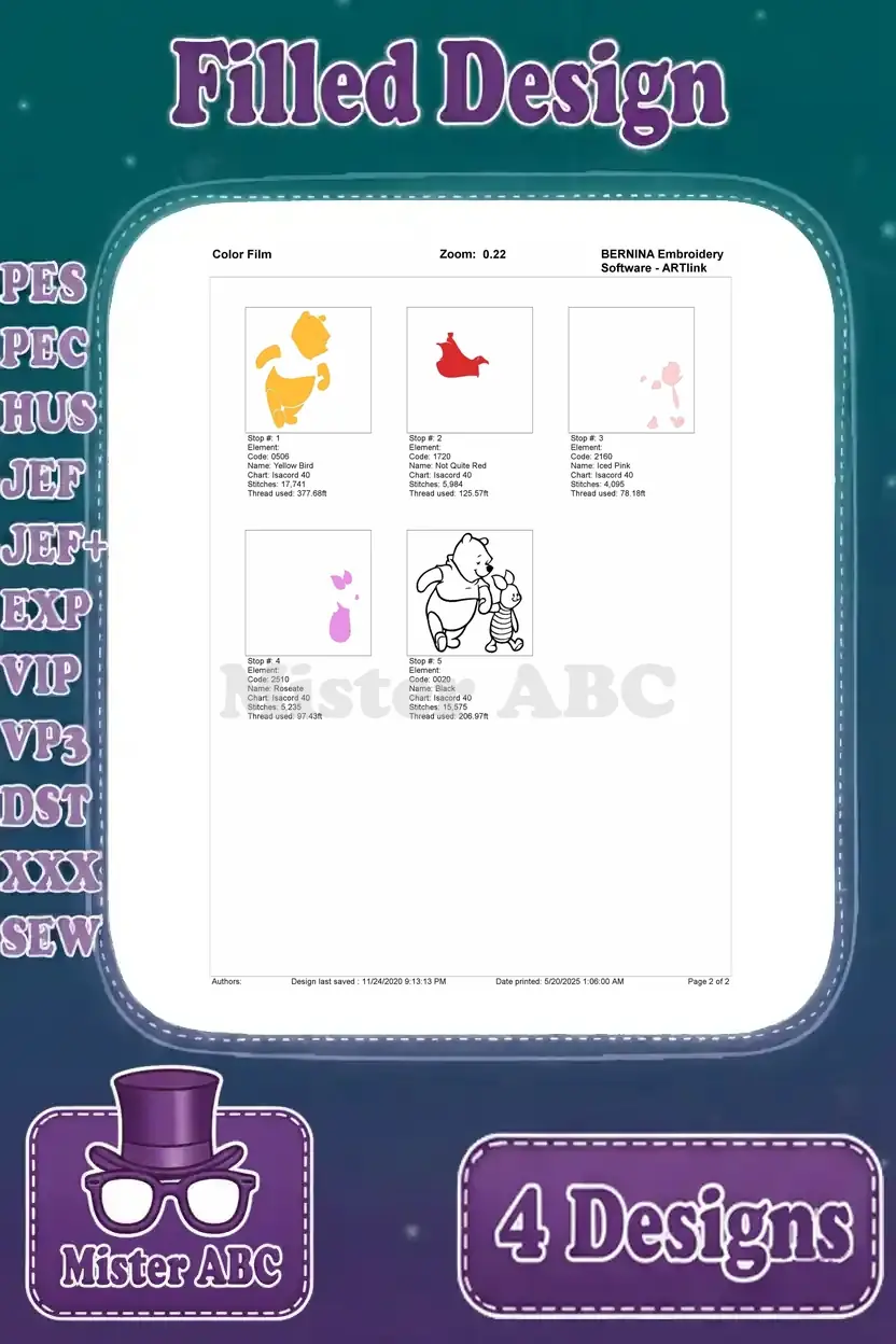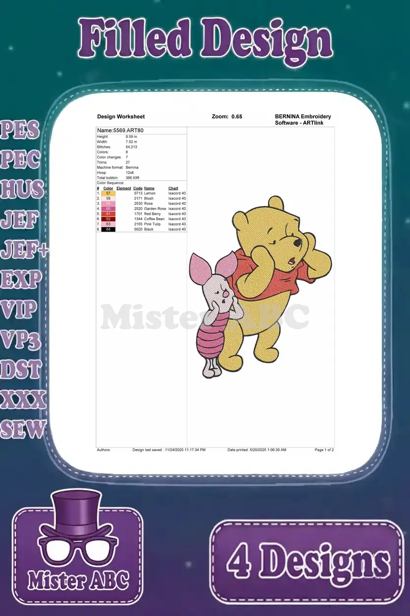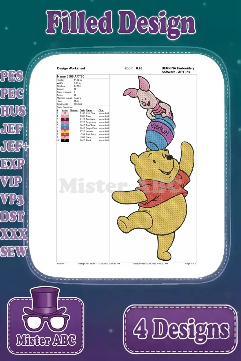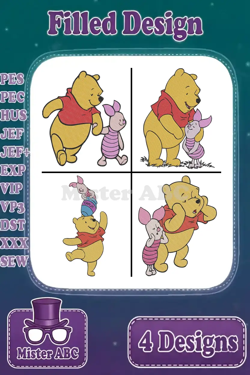 Disney Winnie Pooh And Piglet Playing Together Holding Hands Fun Times Collection – Filled Embroidery Design